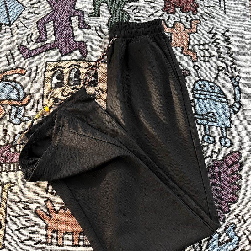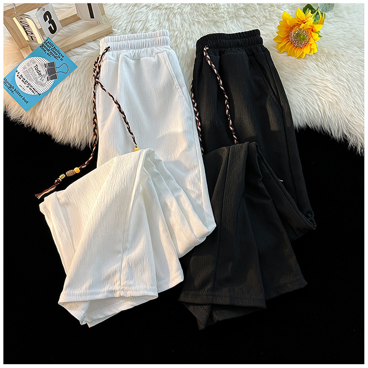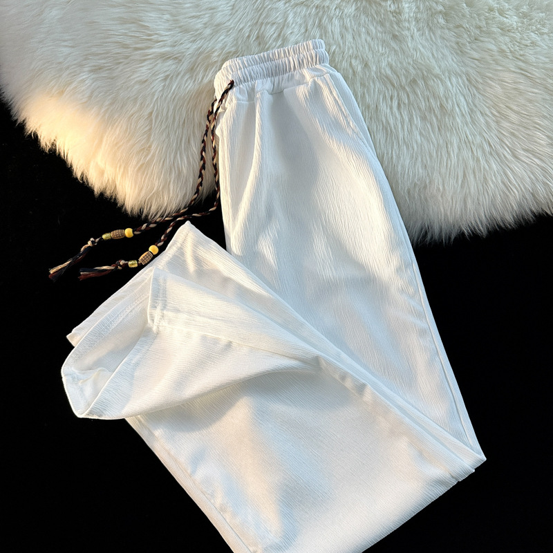 새로운 중국 스타일 국가 스타일 화이트 아이스 실크 바지 남성 여름 얇은 쿨 일본 스타일 디자인 고급 와이드 다리 바지스토어 가기