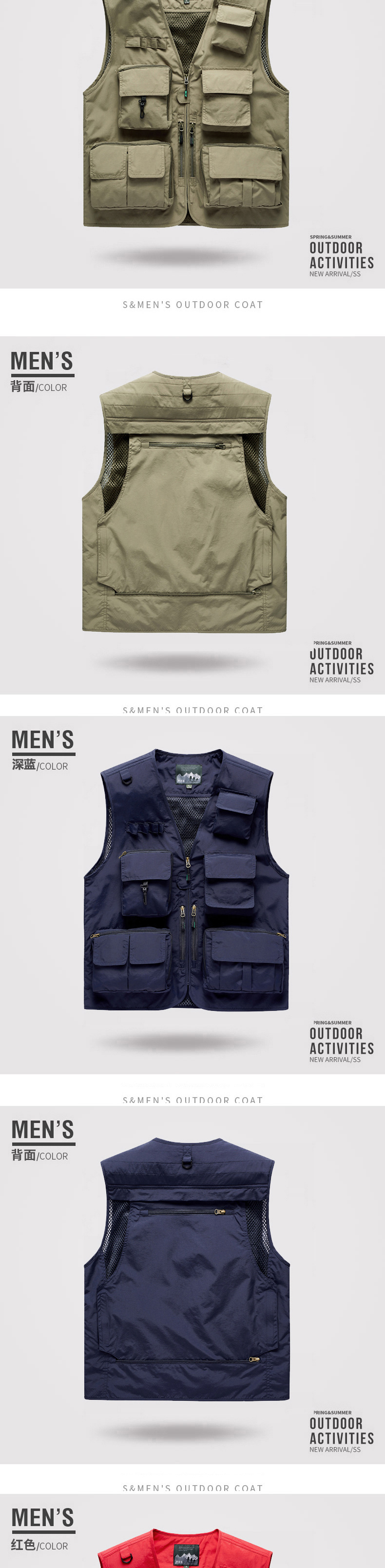 여름철 인기상품, 남성용 얇은 조끼, 아웃도어 등산 촬영 조끼, 캐주얼 루즈핏 멀티 포켓 조끼, 워크웨어 스타일스토어 가기
