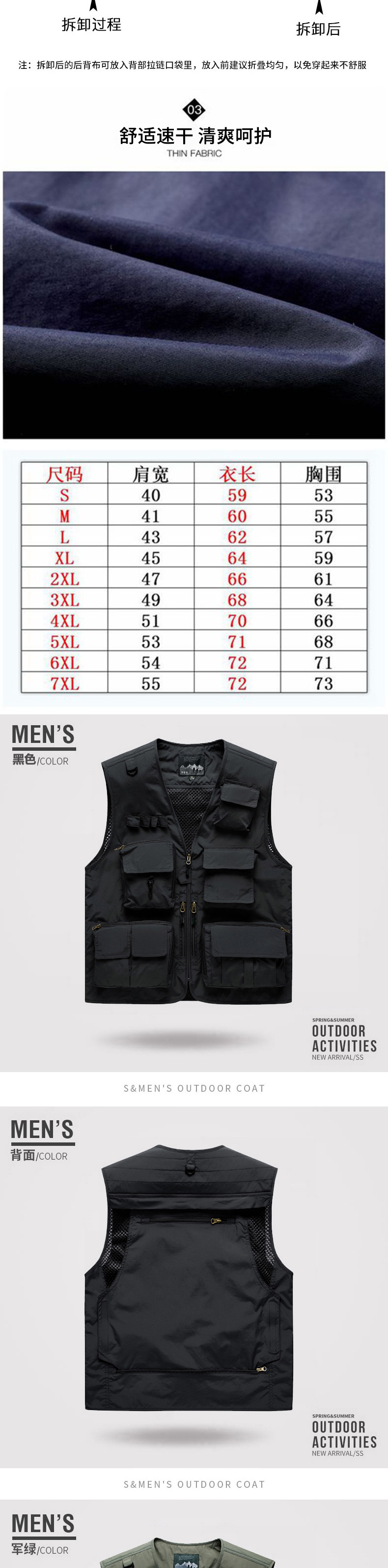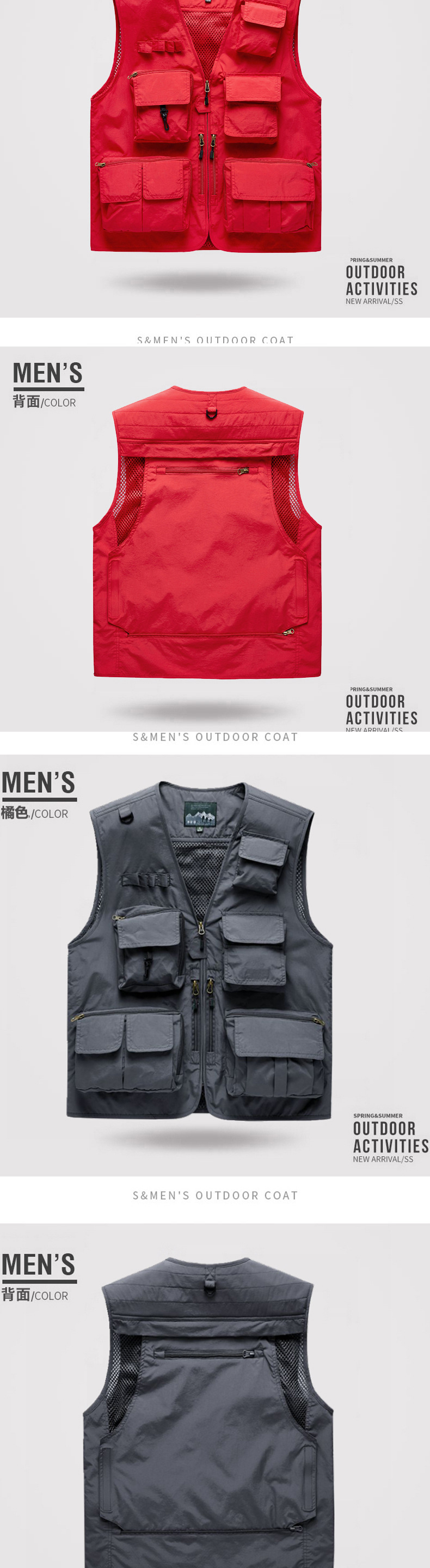 여름철 인기상품, 남성용 얇은 조끼, 아웃도어 등산 촬영 조끼, 캐주얼 루즈핏 멀티 포켓 조끼, 워크웨어 스타일
