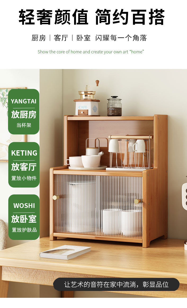 주방 보관 랙 데스크탑 컵 보관 캐비닛 다기능 커피 컵 디스플레이 선반 비고체 목재 방진 보관 캐비닛