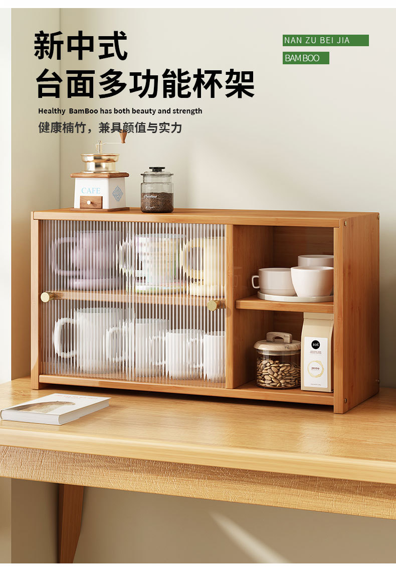 주방 보관 랙 데스크탑 컵 보관 캐비닛 다기능 커피 컵 디스플레이 선반 비고체 목재 방진 보관 캐비닛스토어 가기