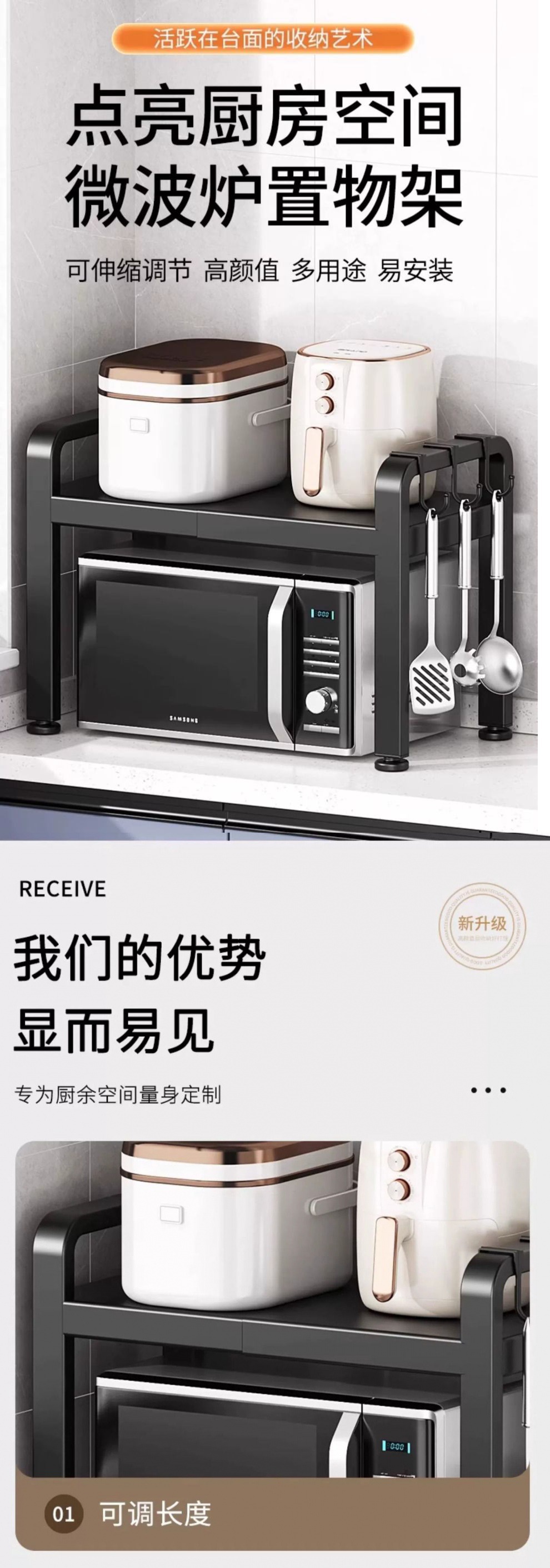 스토리지 랙 마이크로 웨이브 개폐식 주방 데스크탑 다층 스테인레스 스틸 카운터 탑 더블 레이어 스토리지 랙 국경 독립 스테이션