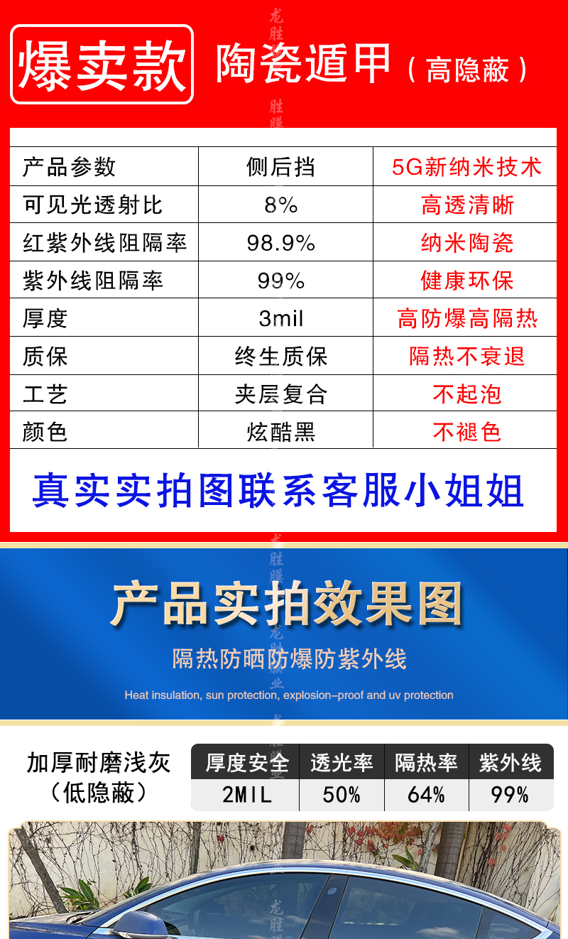 • 고단열 전기도금 반사 블랙(사이드 윈도우 4개 + 리어 기어) 나노 세라믹