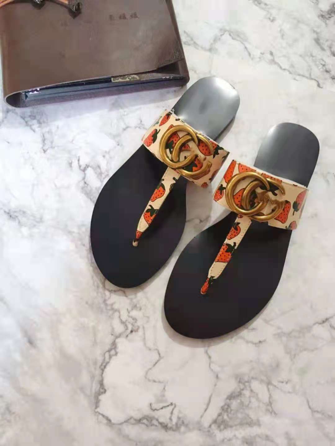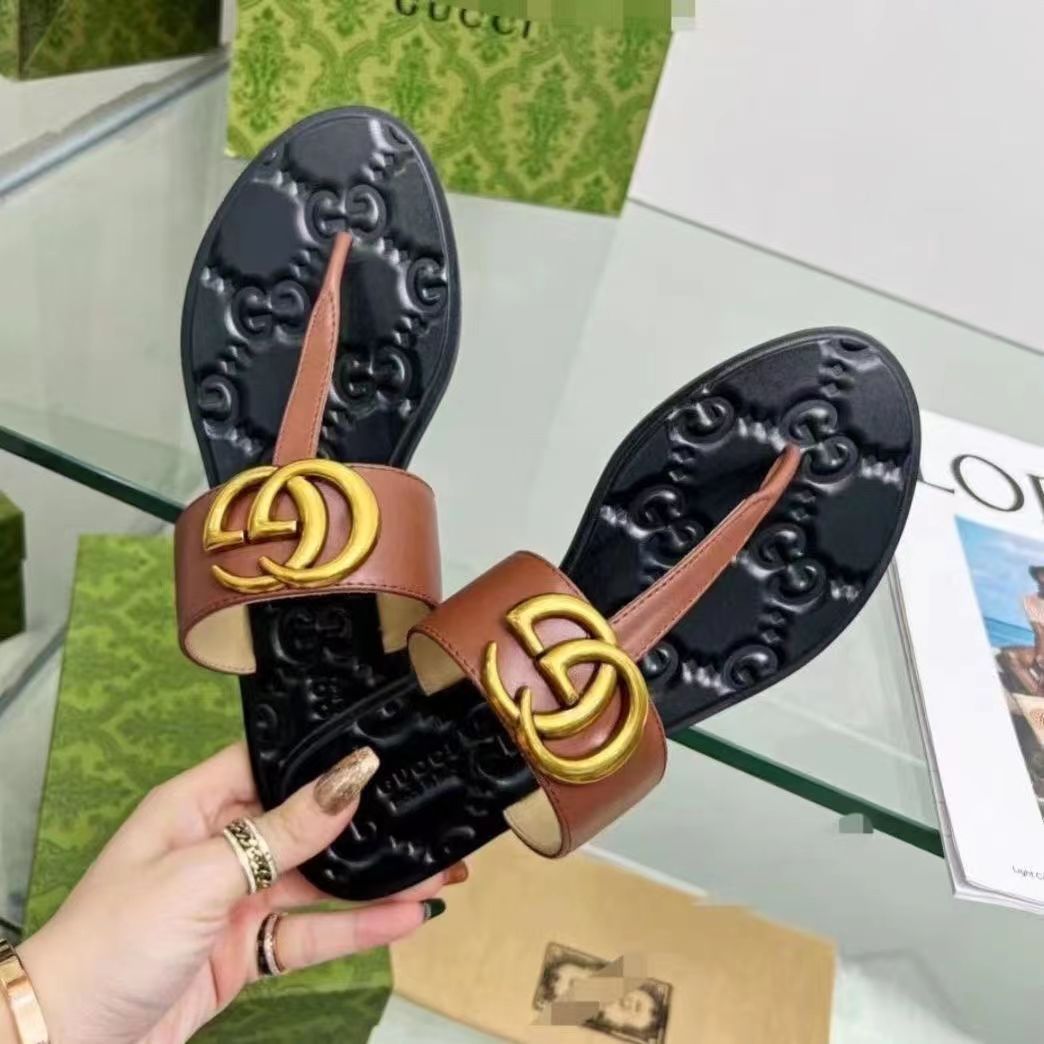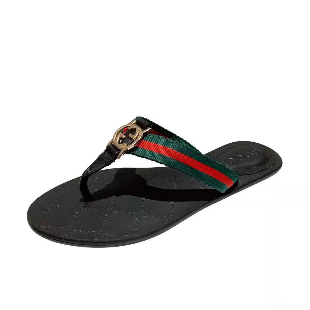 2022 여름 새로운 스타일 플립 플롭 유럽 역 가죽 캐주얼 패션 플랫 플립 플롭 샌들스토어 가기