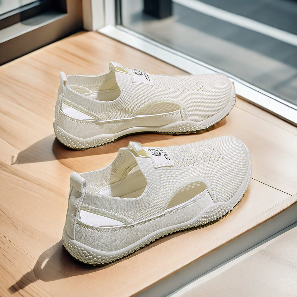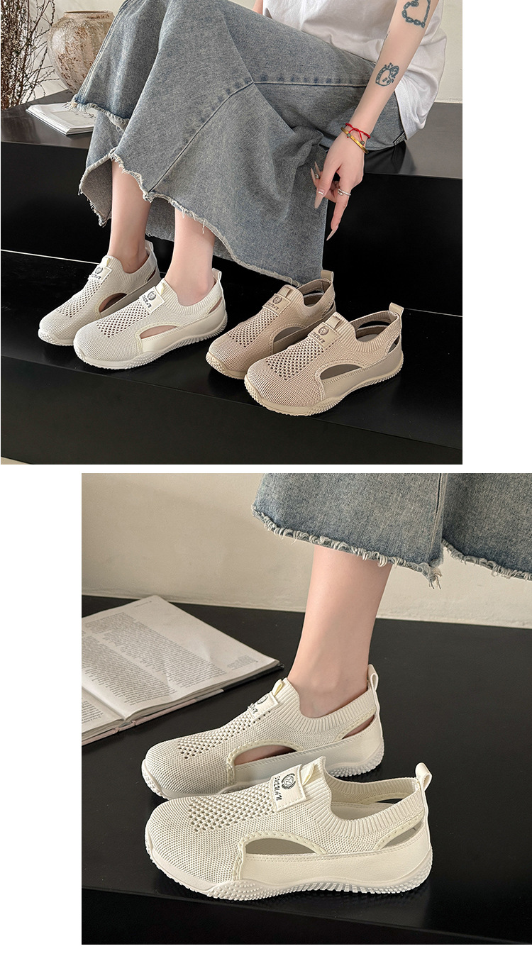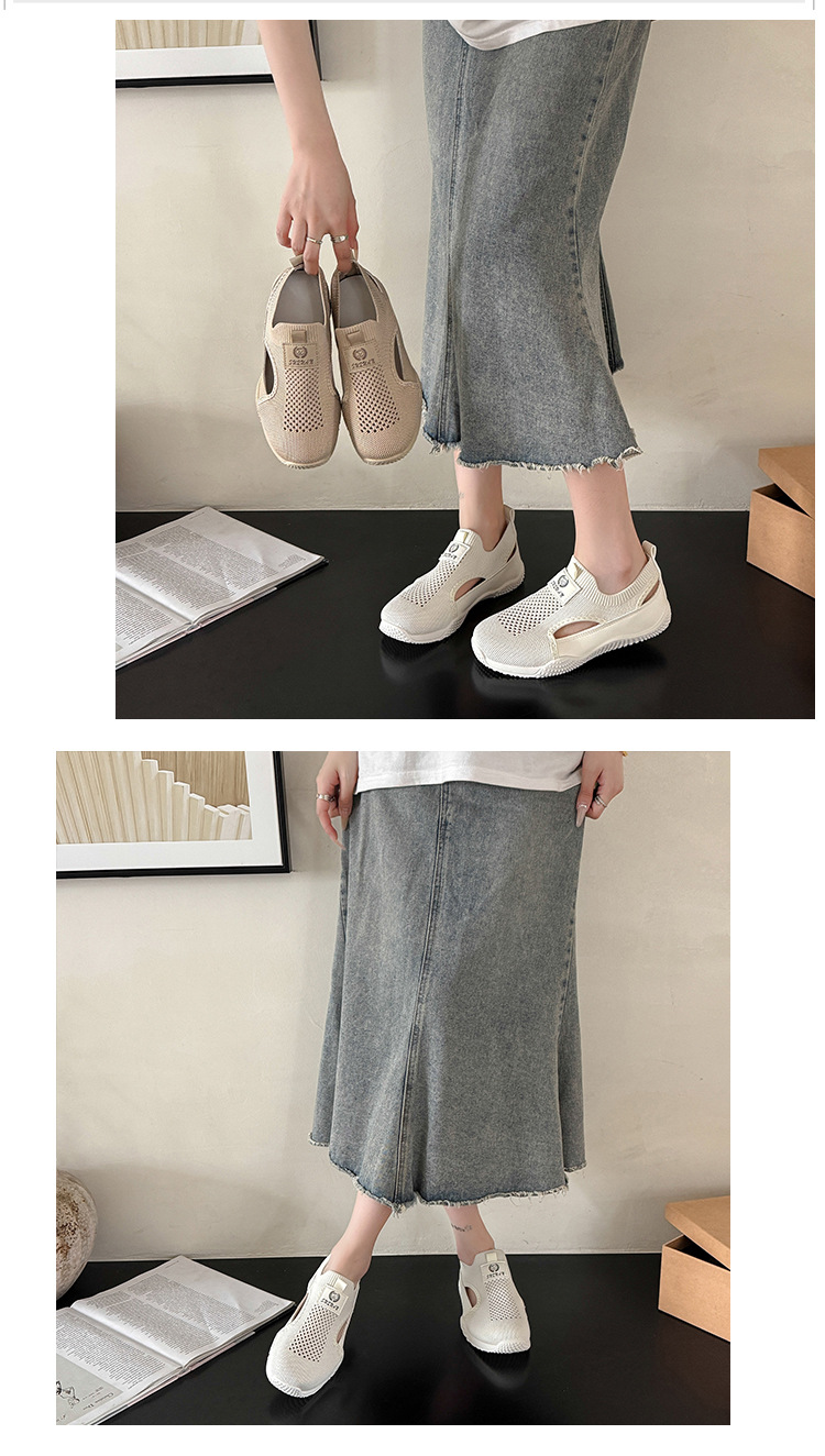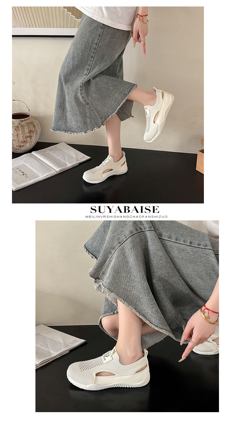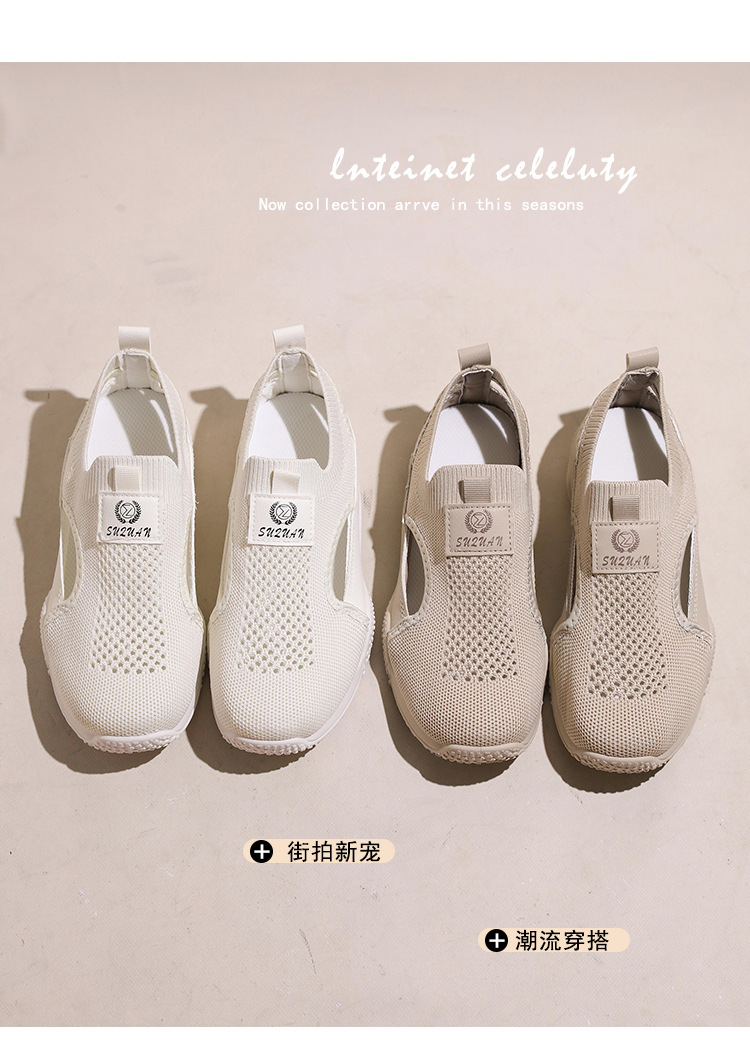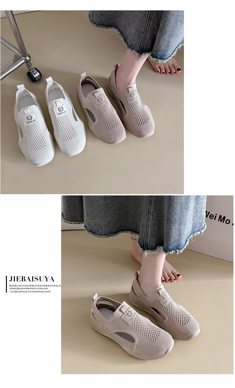 2024 여성용 흰색 신발 여름 대형 한국어 버전 ins 여성 신발 부드러운 밑창 경량 다용도 플라이 니트 여성 신발 트렌디 K1506