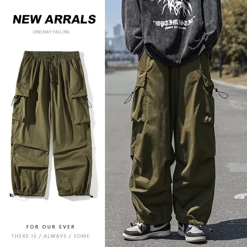카키 툴링 바지 남자 봄과 여름 2024 새로운 일본 도시 소년 하이 스트리트 패션 브랜드 스트레이트 와이드 레그 바지스토어 가기