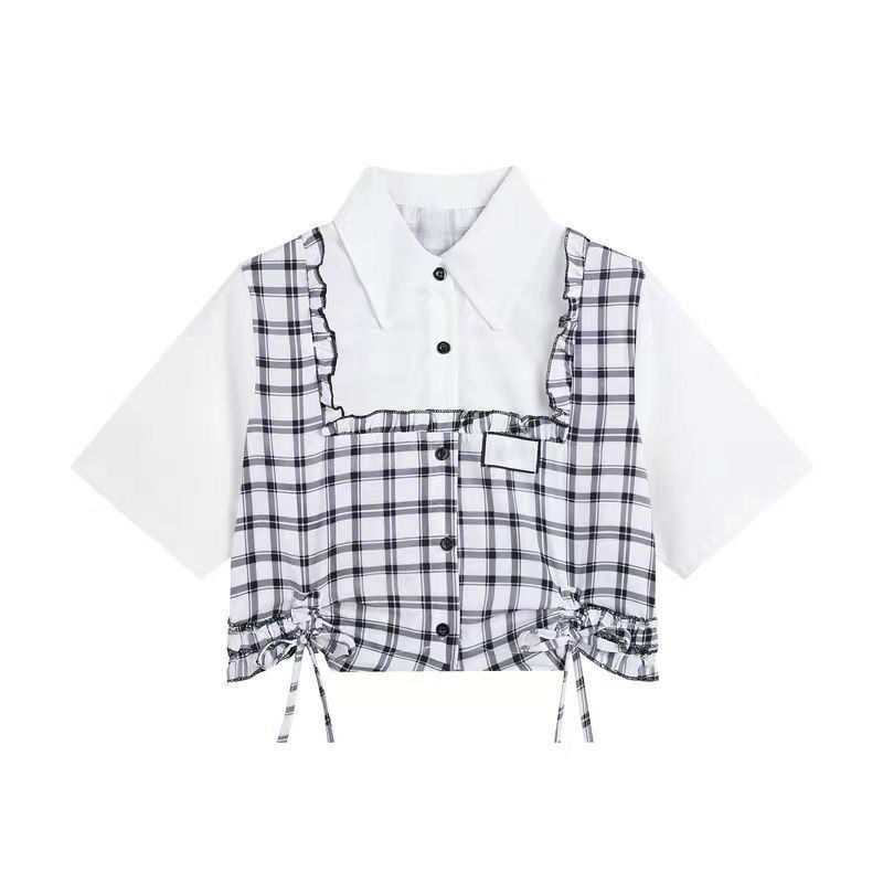 2024 새로운 여름 여성의 불규칙한 스커트 투피스 세트 대학 스타일 연령 감소 달콤한 디자인 셔츠 세트스토어 가기
