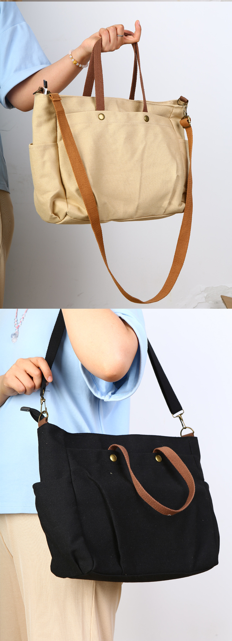 원래 두꺼운 캔버스 가방 크로스 바디 토트 백 간단한 올 매치 캐주얼 아트 학생 통근 핸드백 여성용 가방스토어 가기