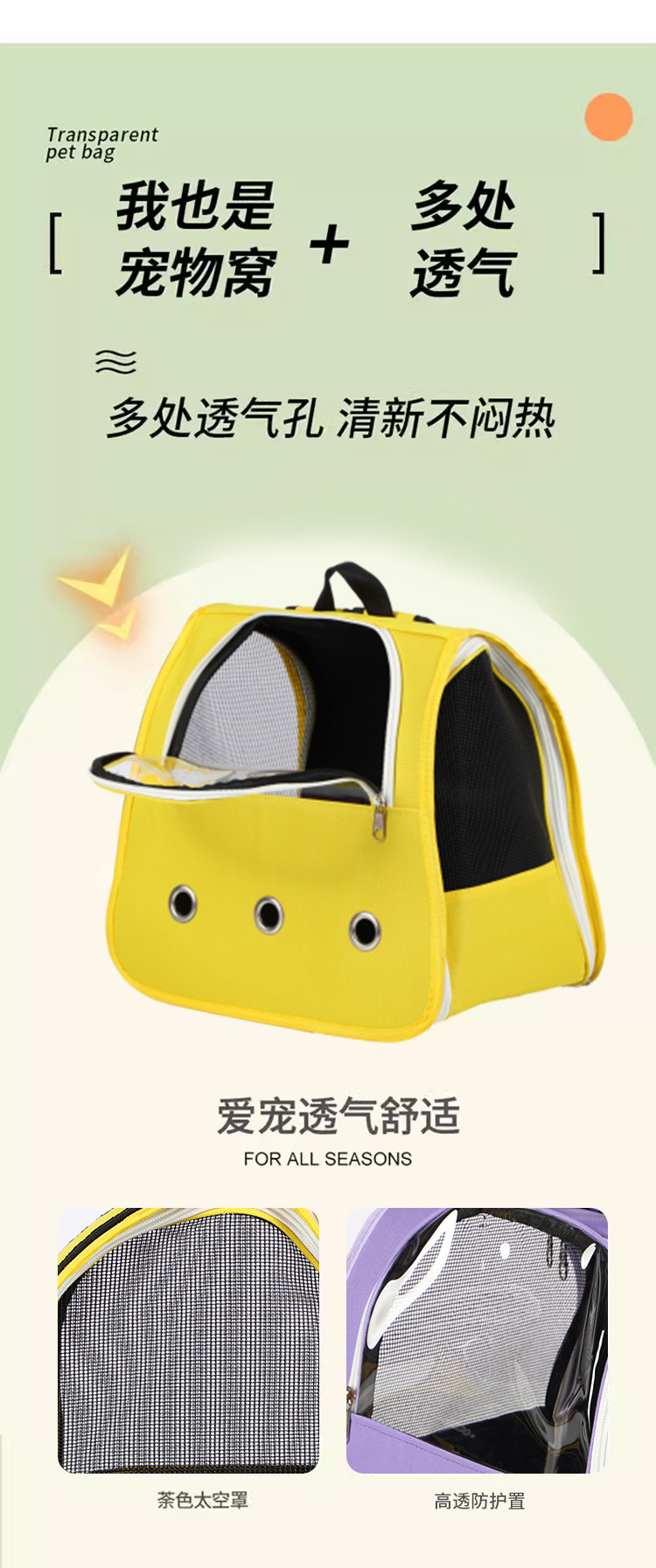• 노란색 휴대용 애완 동물 배낭