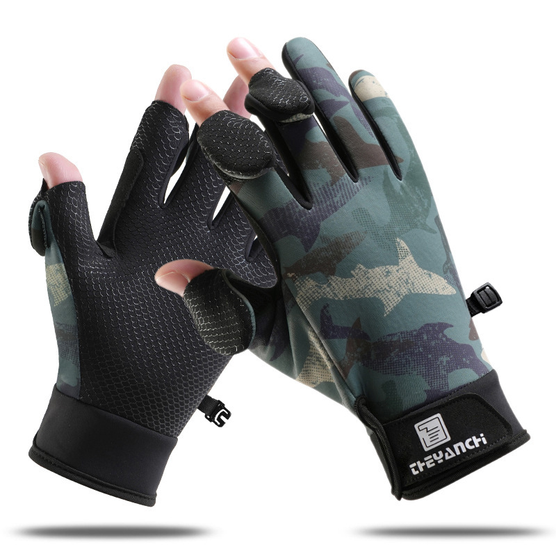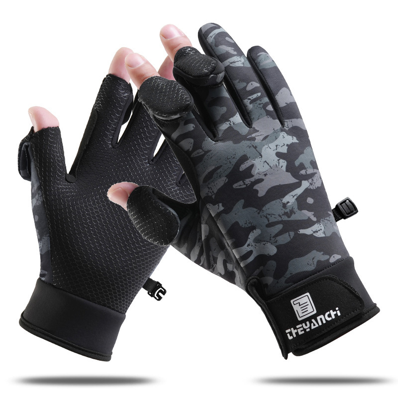 가을 겨울 야외 낚시 남성용 D309 루어 낚시 손가락 없는 터치스크린 미끄럼 방지 방수 자전거 스포츠 낚시 장갑