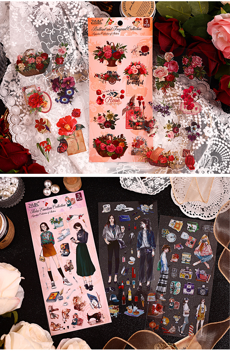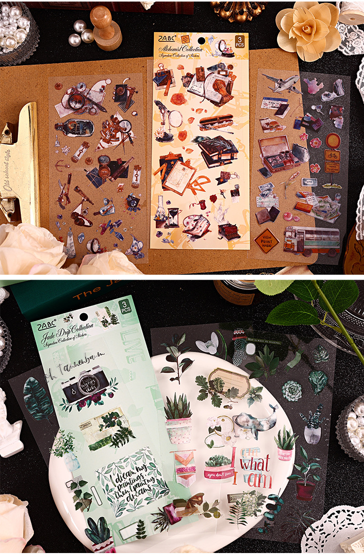 Yizhi 세트 투명 방수 애완 동물 복고풍 손 계정 스티커 diy 손 계정 일기 장식 소재 국경 간 문구스토어 가기
