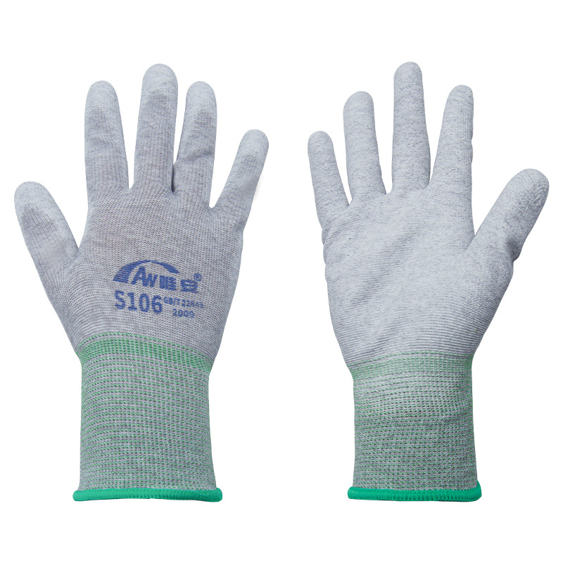 Weian S106PU 손가락 코팅 탄소 섬유 나일론 정전기 방지 장갑 노동 보호 미끄럼 통기성 내마모성 천연 우유 장갑