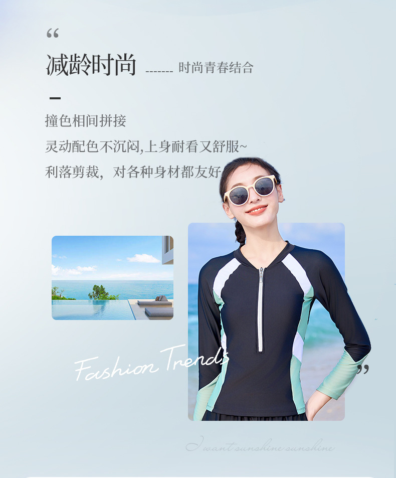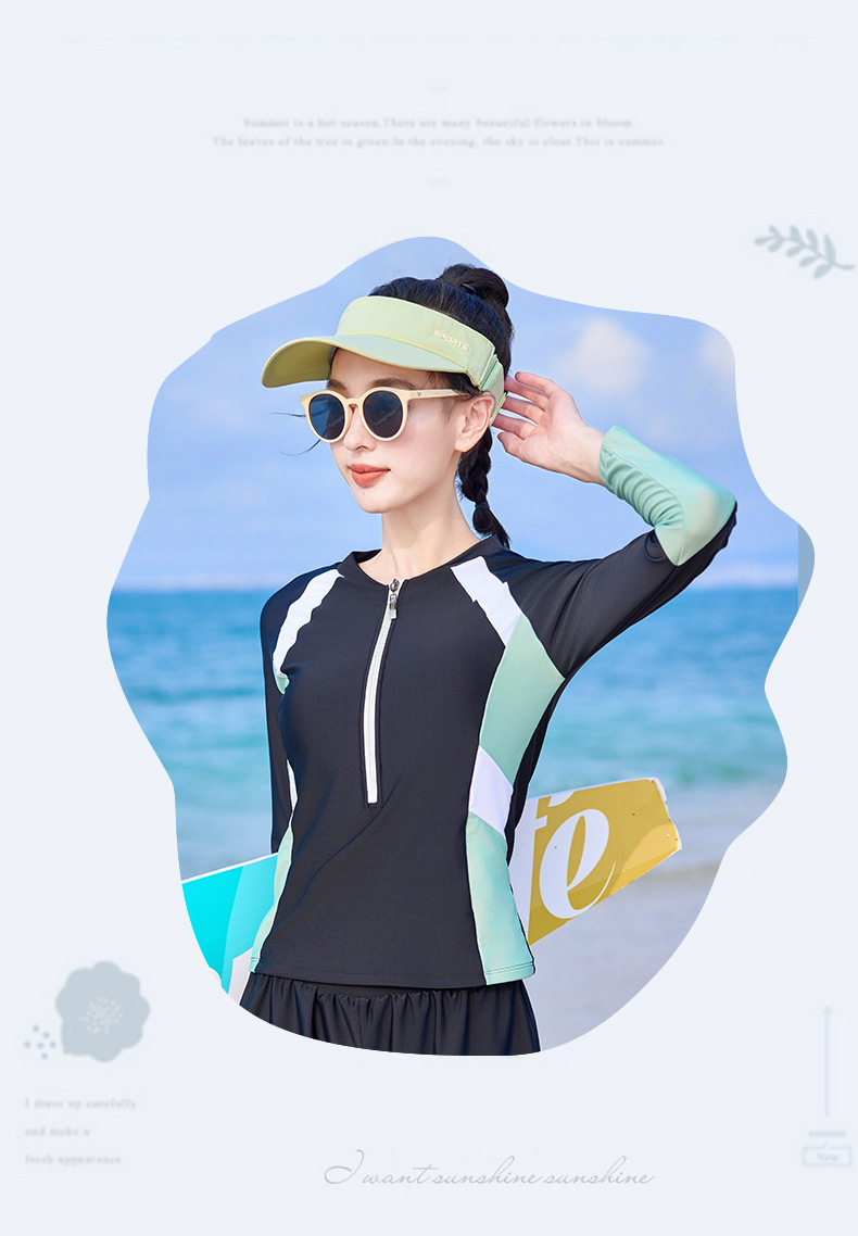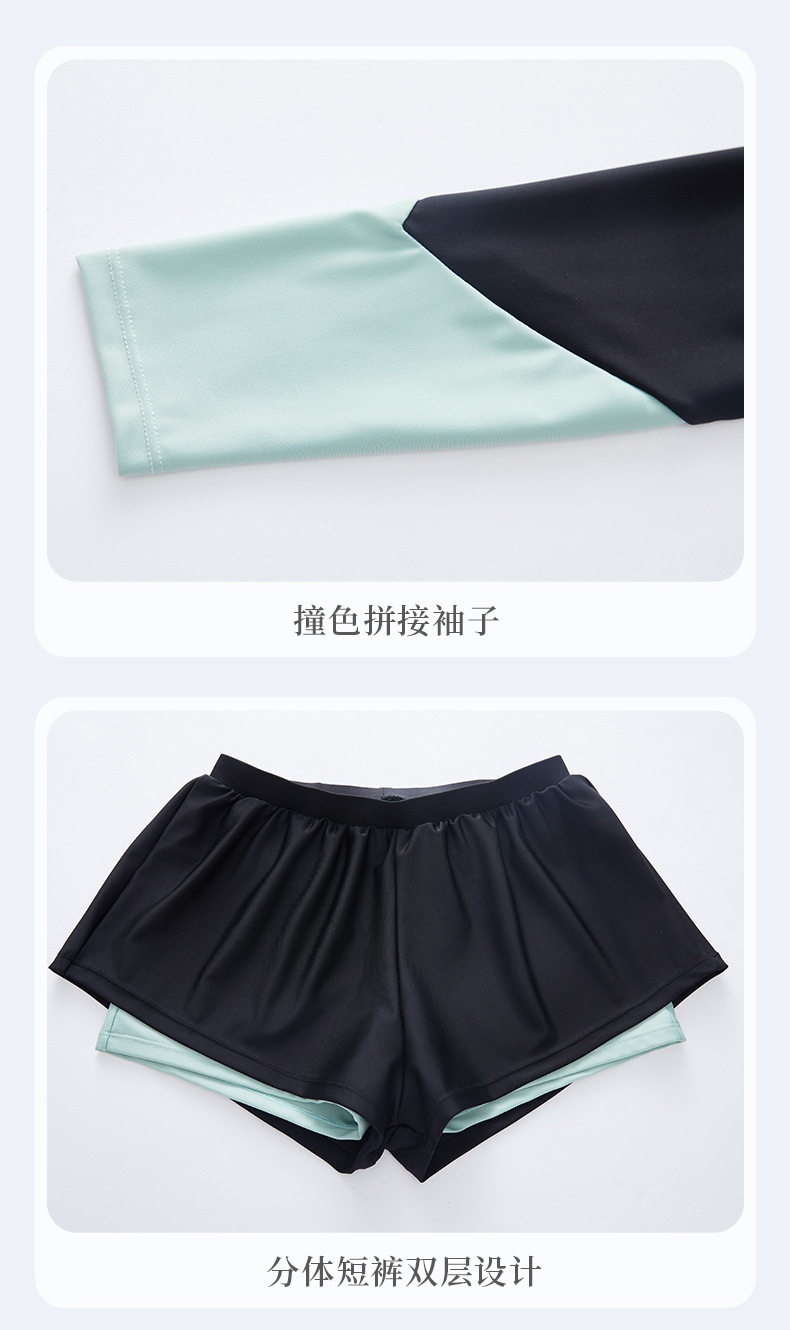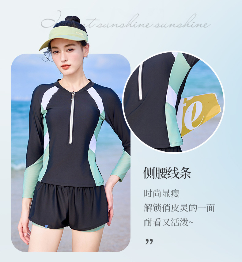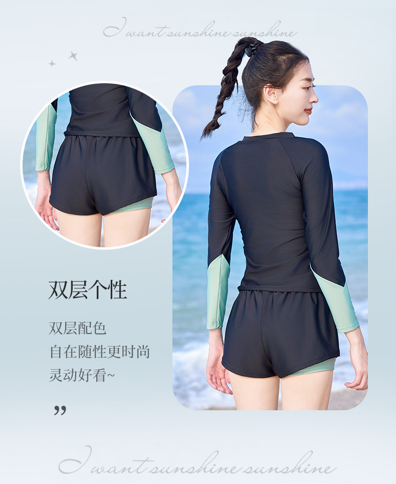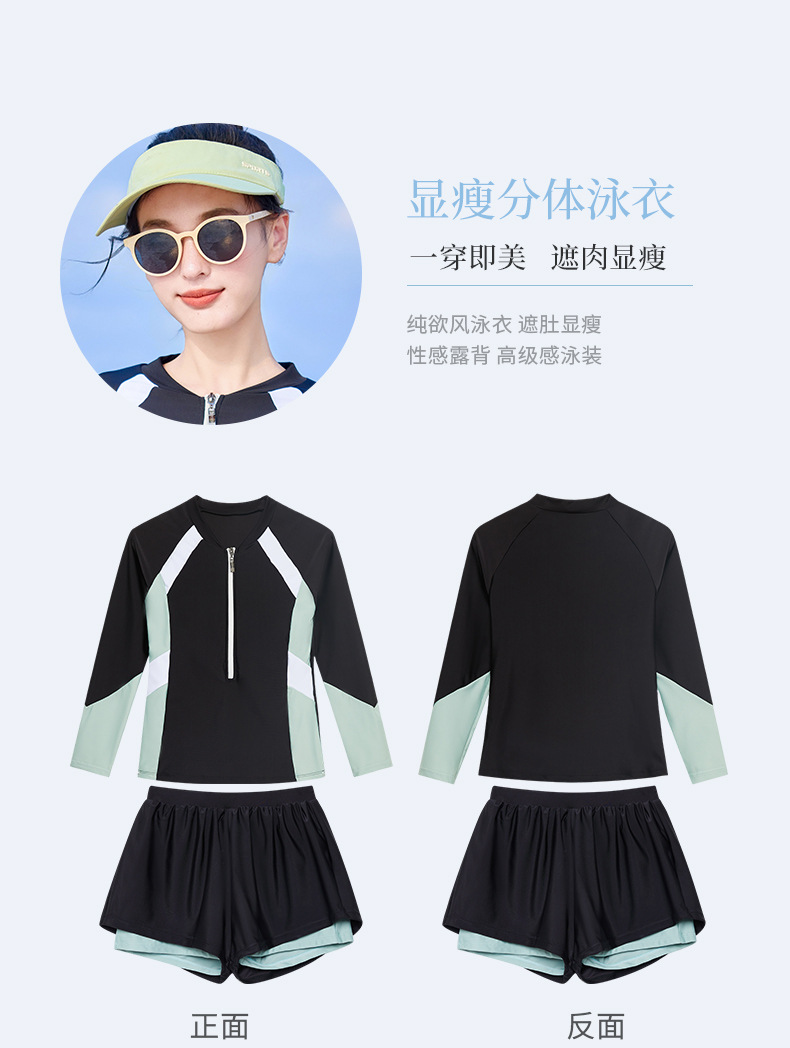 분할 수영복 여성의 새로운 슬리밍 배꼽 보수 수영장 특별 긴 소매 온천 수영복 가짜 투피스 바지