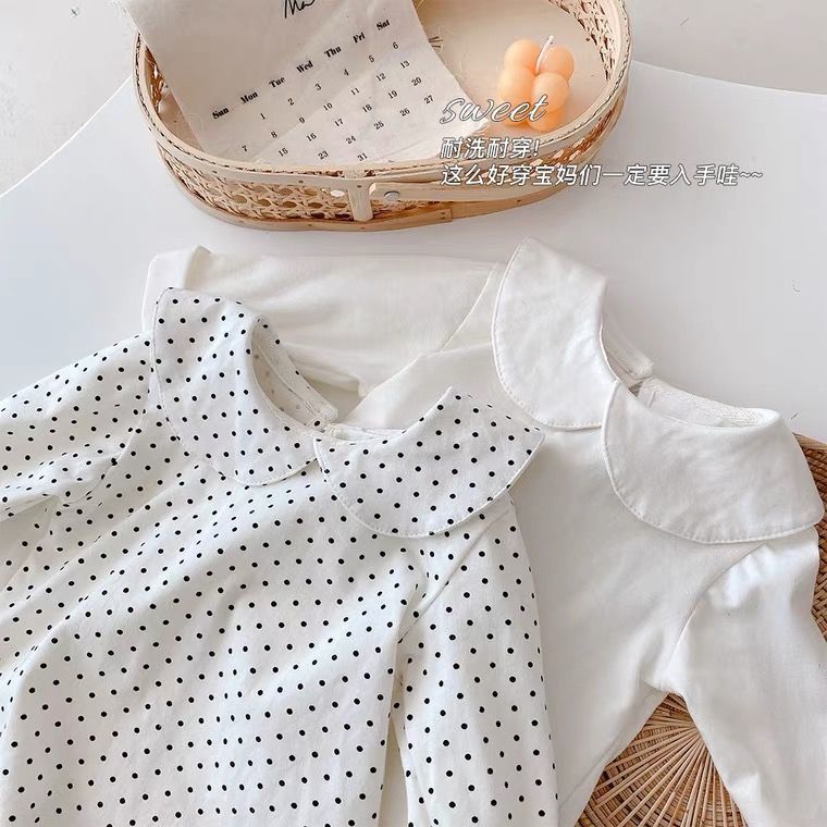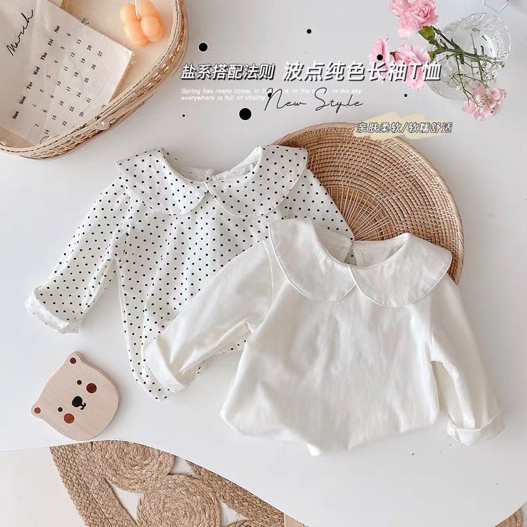 새로운 한국식 인터넷-유명 소녀 긴팔 티셔츠 봄과 가을 서양식 베이비 화이트 탑 T 베이비 렐베이스 셔츠스토어 가기