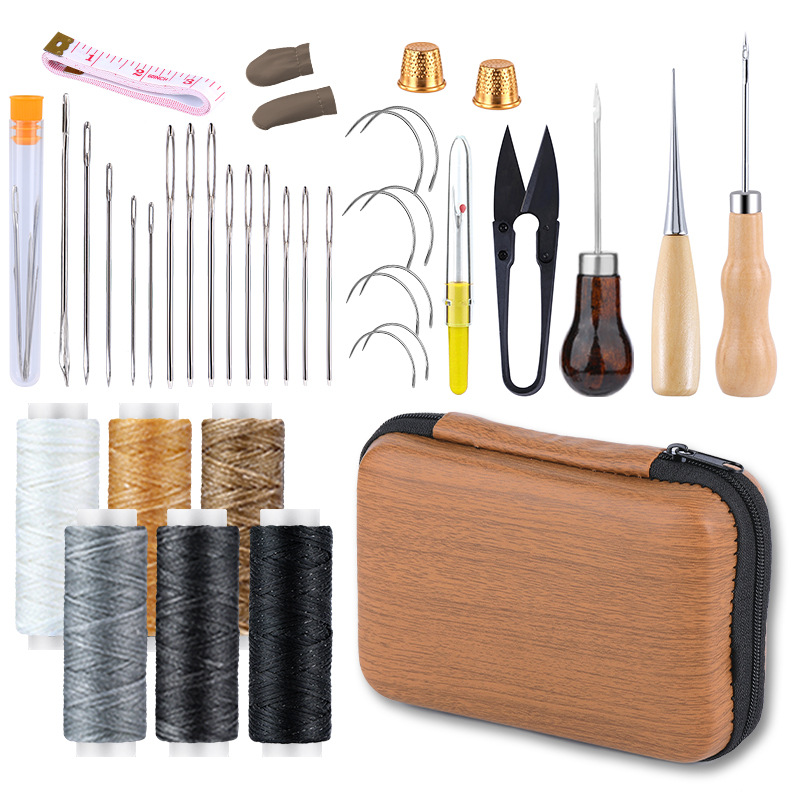크로스 국경 가죽 제품 가죽 도구 손 재봉 세트 멀티 사이즈 DIY 재봉 바늘 캔버스 가죽 스레드 조합 세트