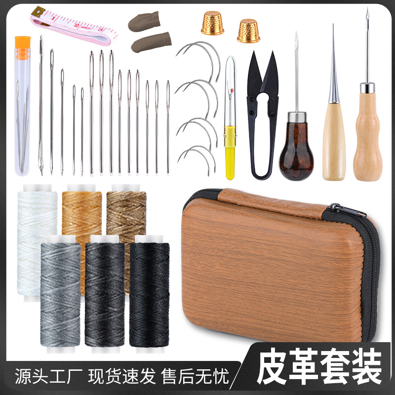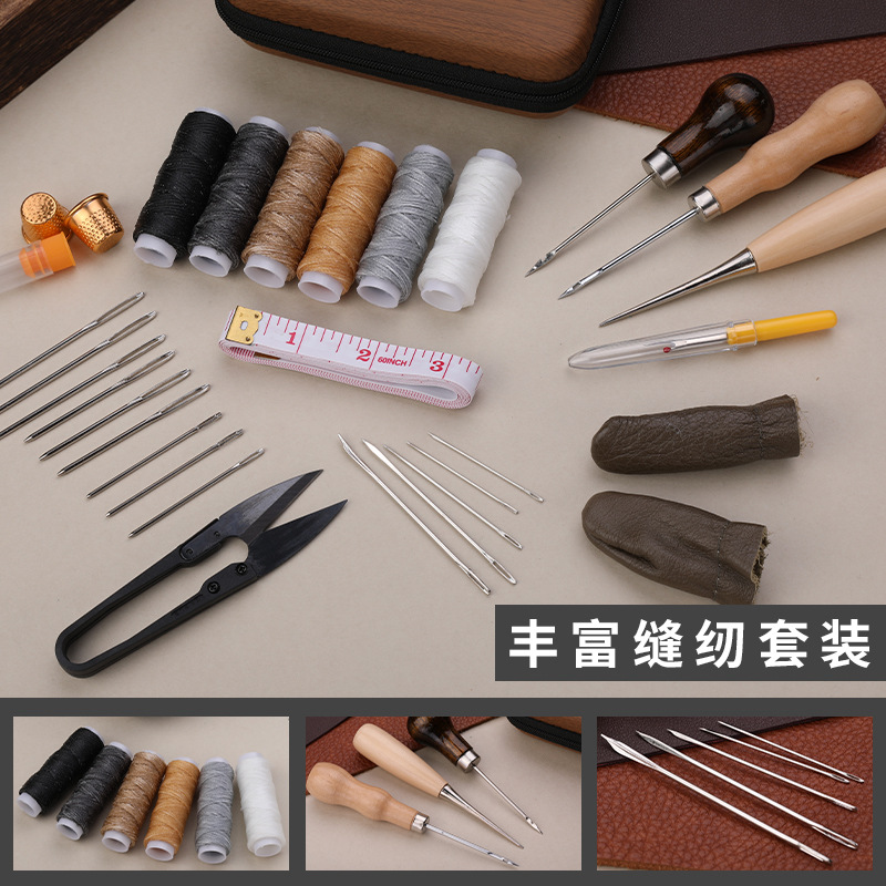 크로스 국경 가죽 제품 가죽 도구 손 재봉 세트 멀티 사이즈 DIY 재봉 바늘 캔버스 가죽 스레드 조합 세트스토어 가기