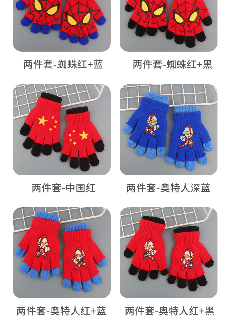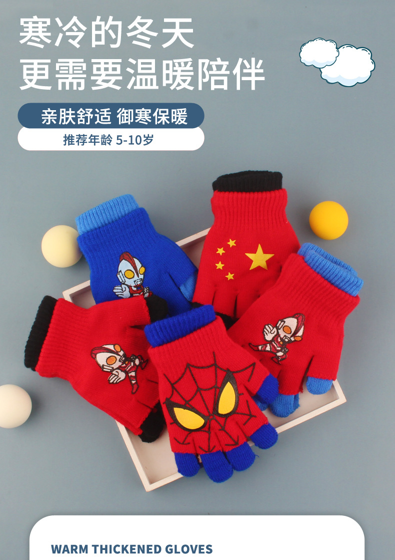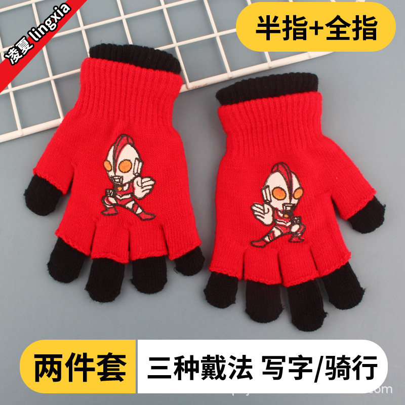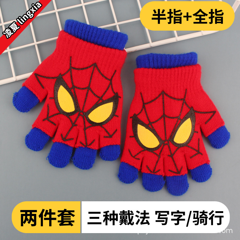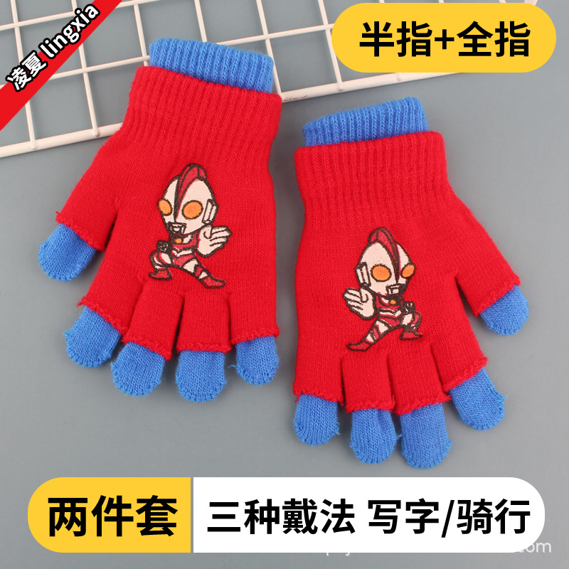 어린이 장갑 겨울 따뜻한 더블 레이어 소년 만화 서브 손가락 반 손가락 아기 다섯 손가락 쓰기 투피스 세트 냉동 방지 손스토어 가기