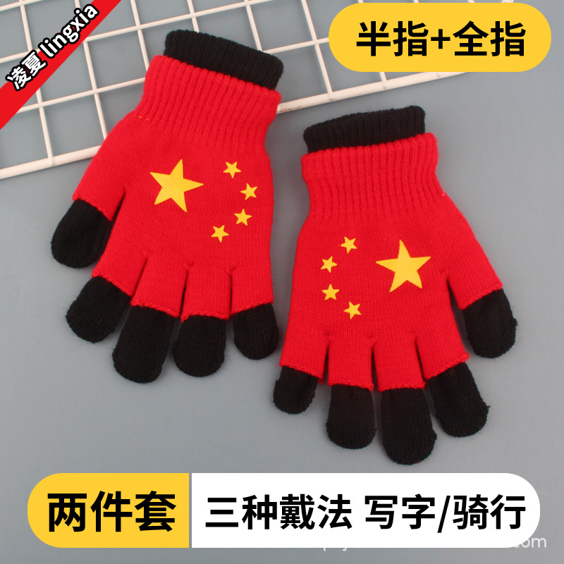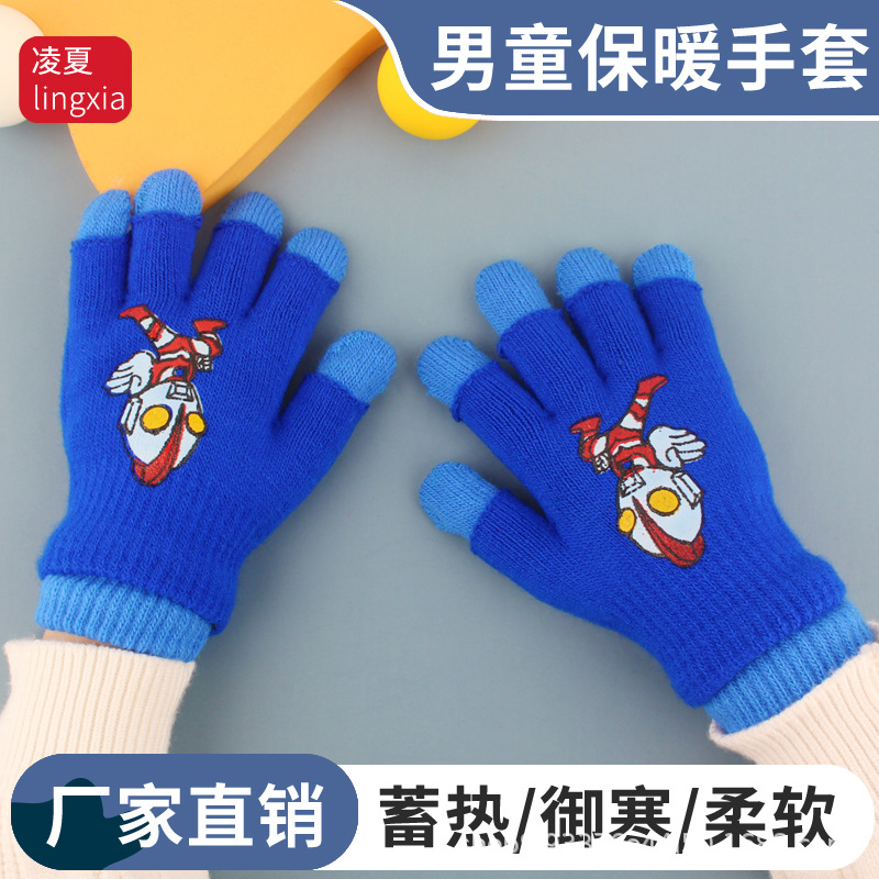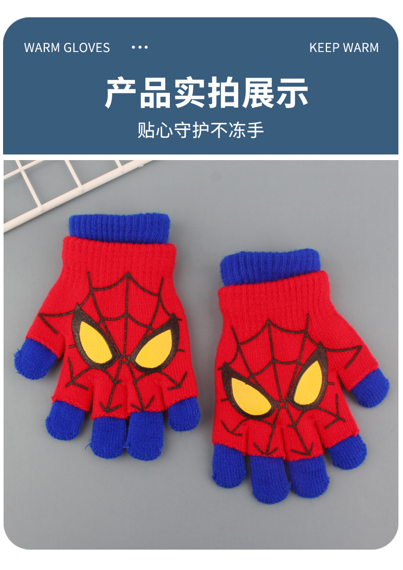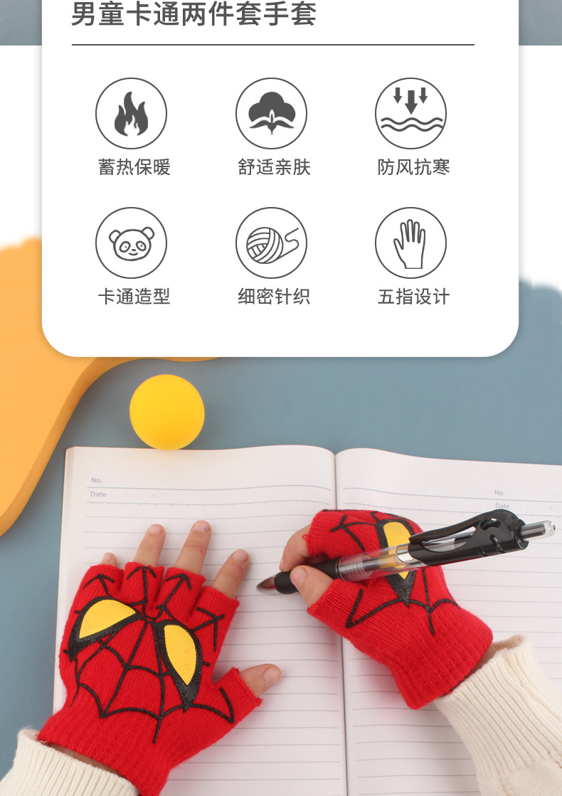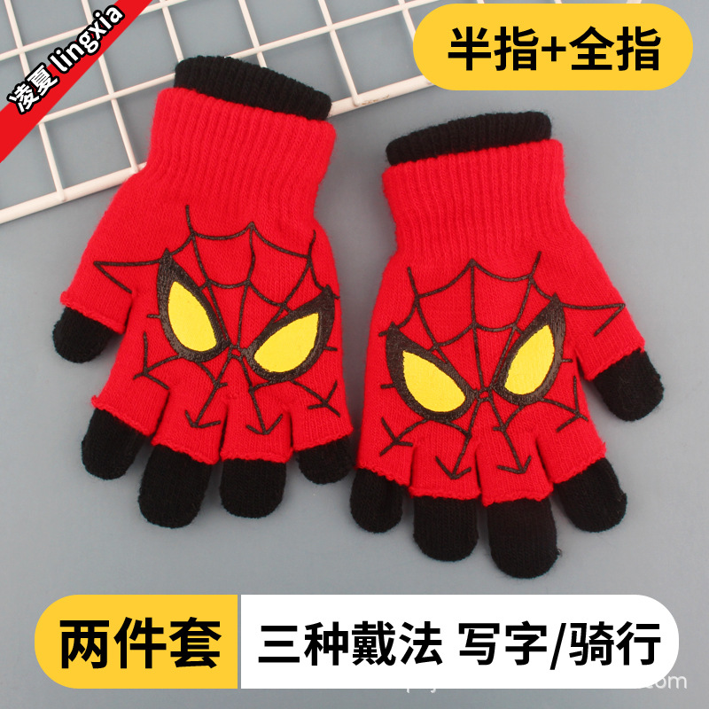 어린이 장갑 겨울 따뜻한 더블 레이어 소년 만화 서브 손가락 반 손가락 아기 다섯 손가락 쓰기 투피스 세트 냉동 방지 손스토어 가기