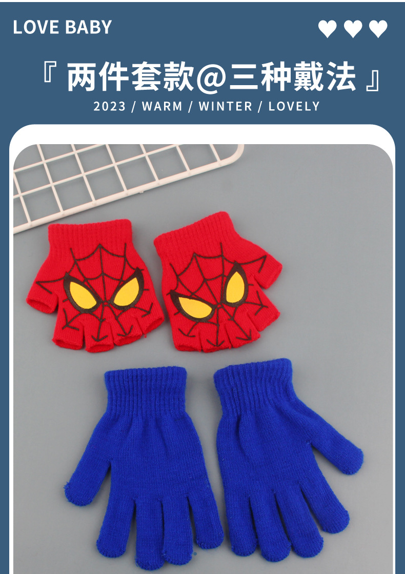 어린이 장갑 겨울 따뜻한 더블 레이어 소년 만화 서브 손가락 반 손가락 아기 다섯 손가락 쓰기 투피스 세트 냉동 방지 손