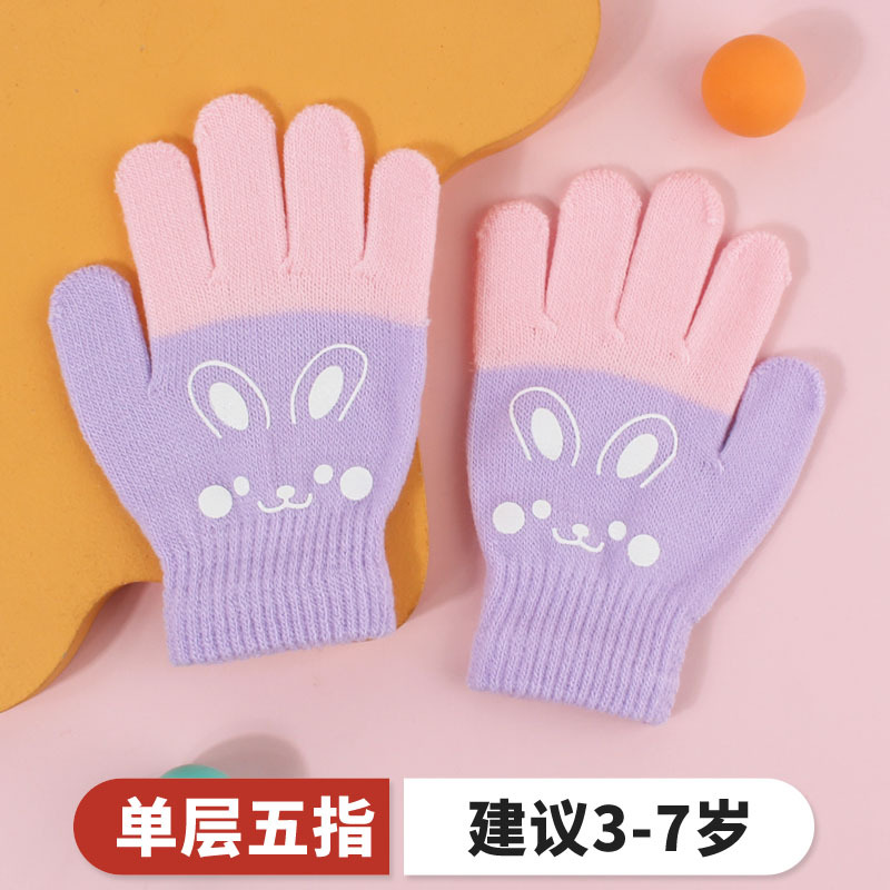 • 3~7세에게 권장되는 단층 다섯 손가락 이모티콘 토끼 보라색