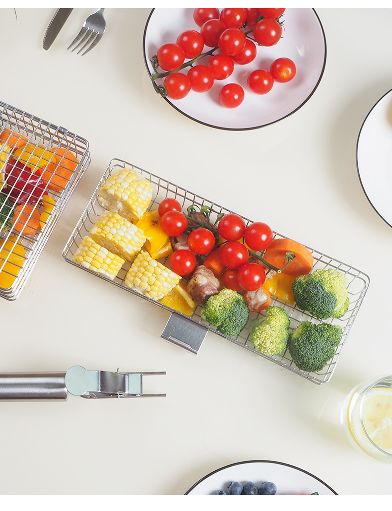 BBQ 바구니 구운 생선 바베큐 홀더 BBQ 스테인레스 스틸 바베큐 그물 훈제 바베큐 직사각형 아마존 그릴 바구니