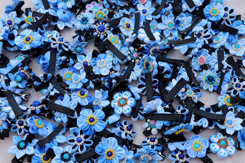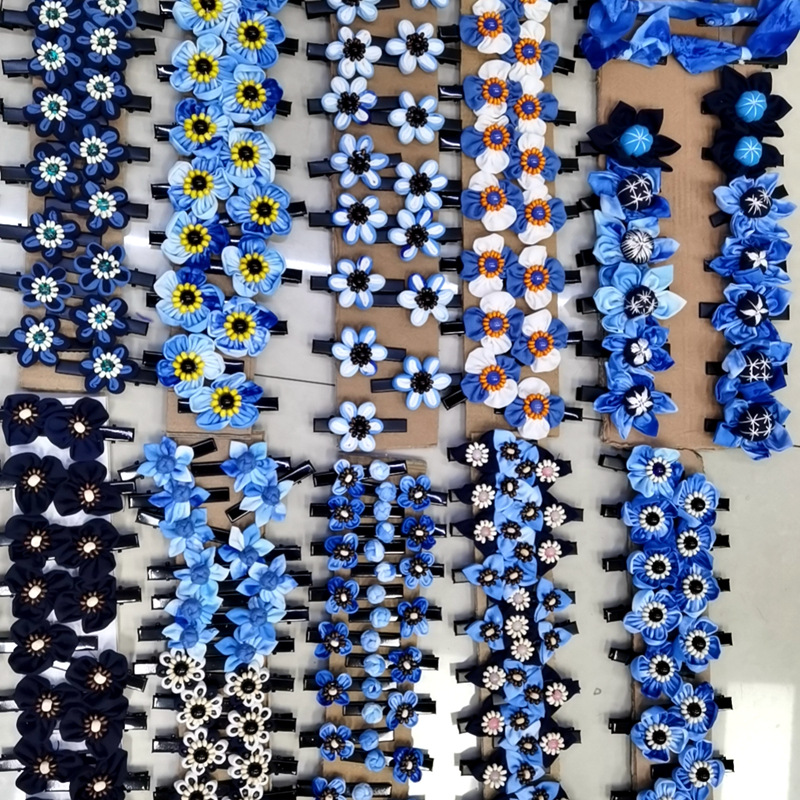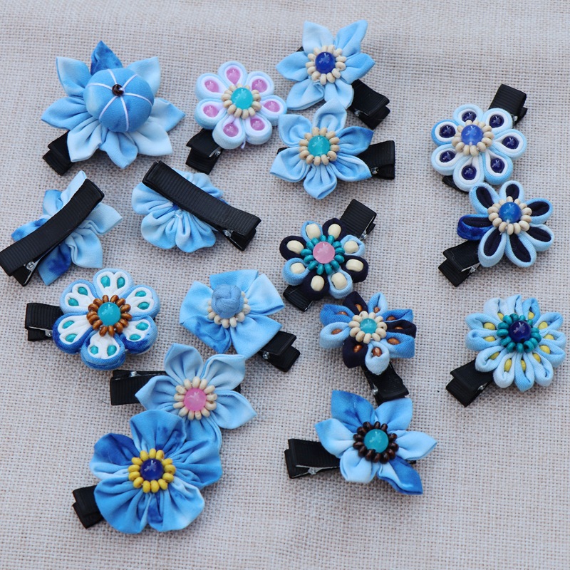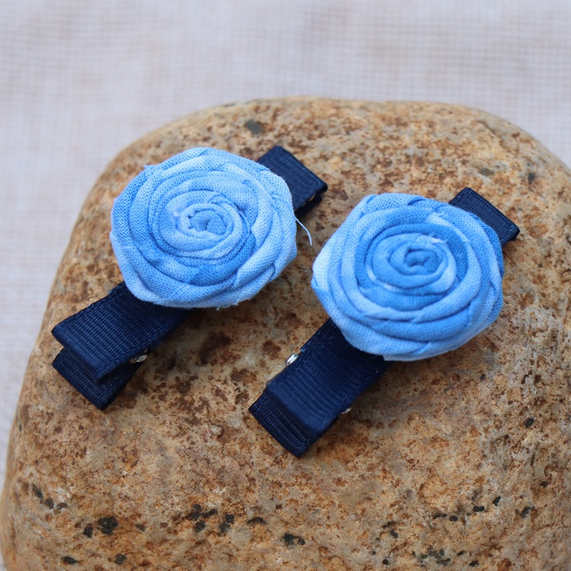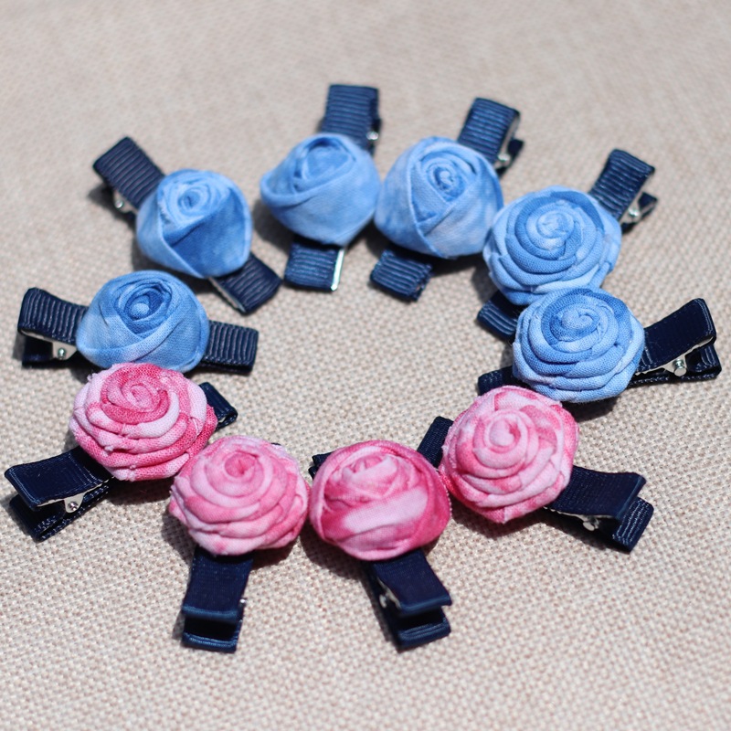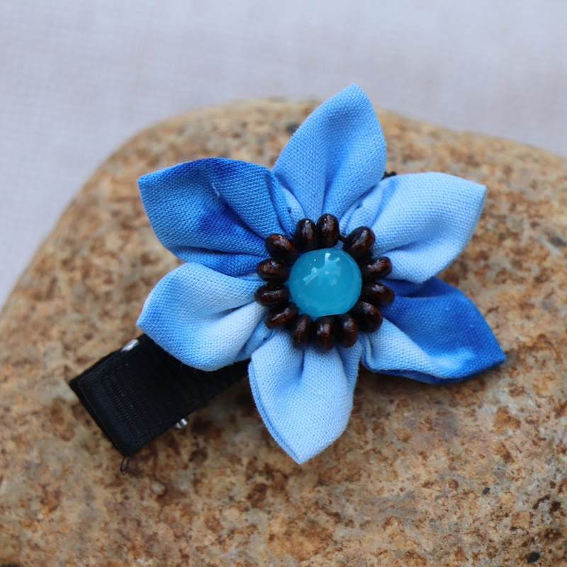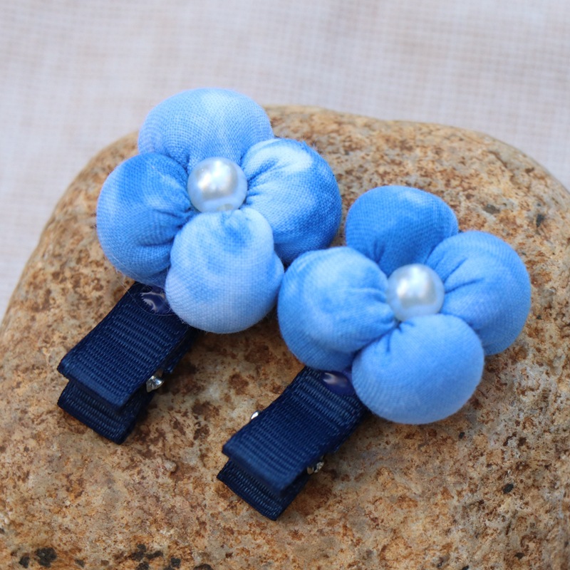 어린이 블루 헤어 클립 달리 국가 바람 블루 타이 염색 헤어 클립 신선한 달콤한 바람 꽃 헤어 액세서리 제조 업체 도매스토어 가기