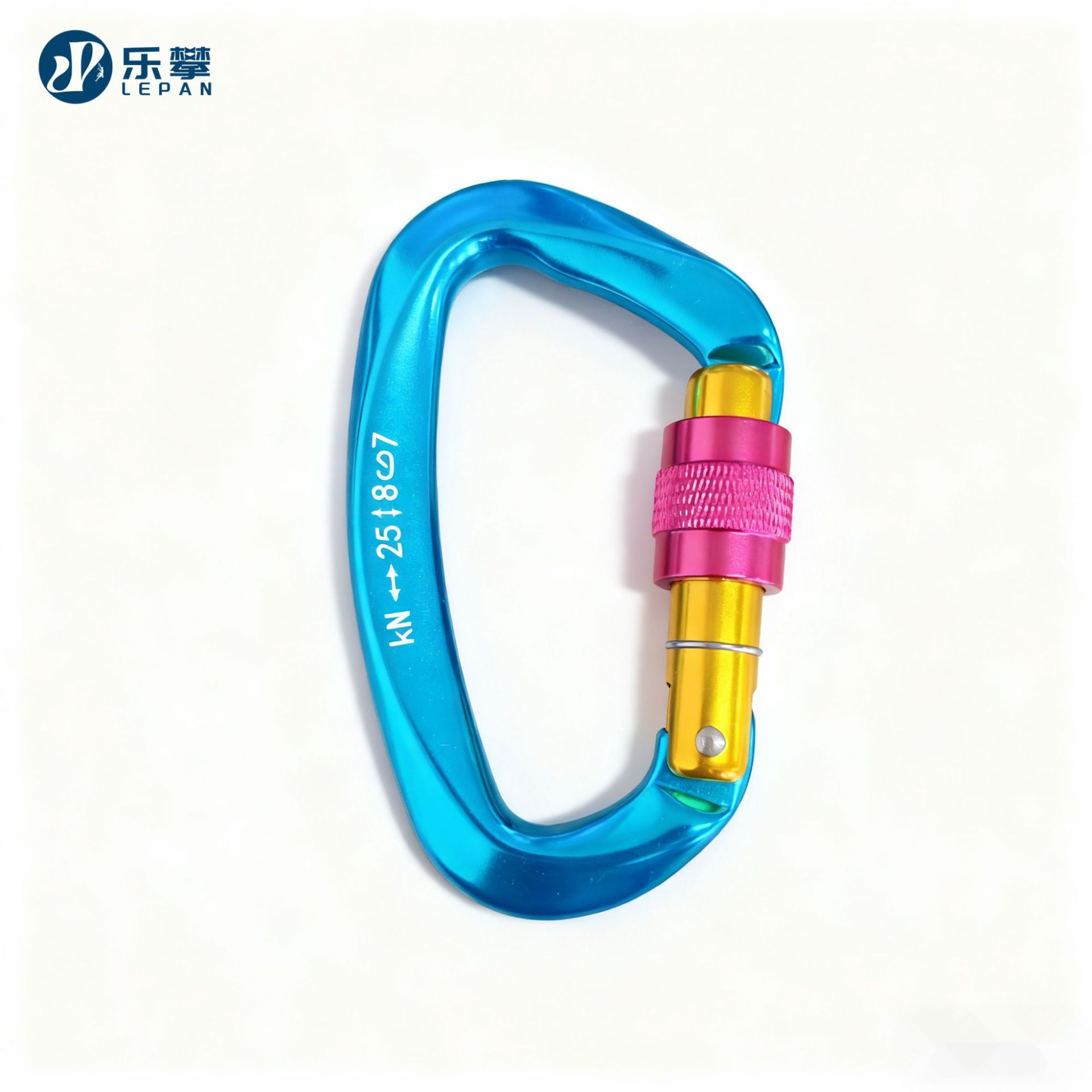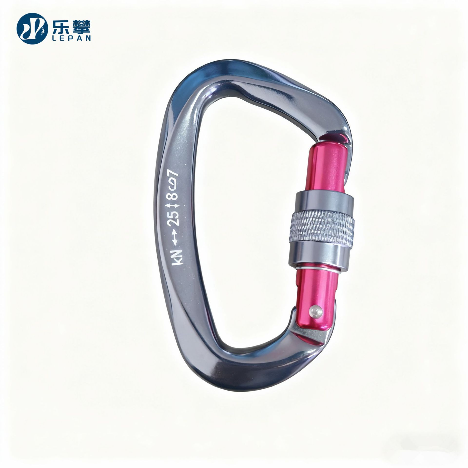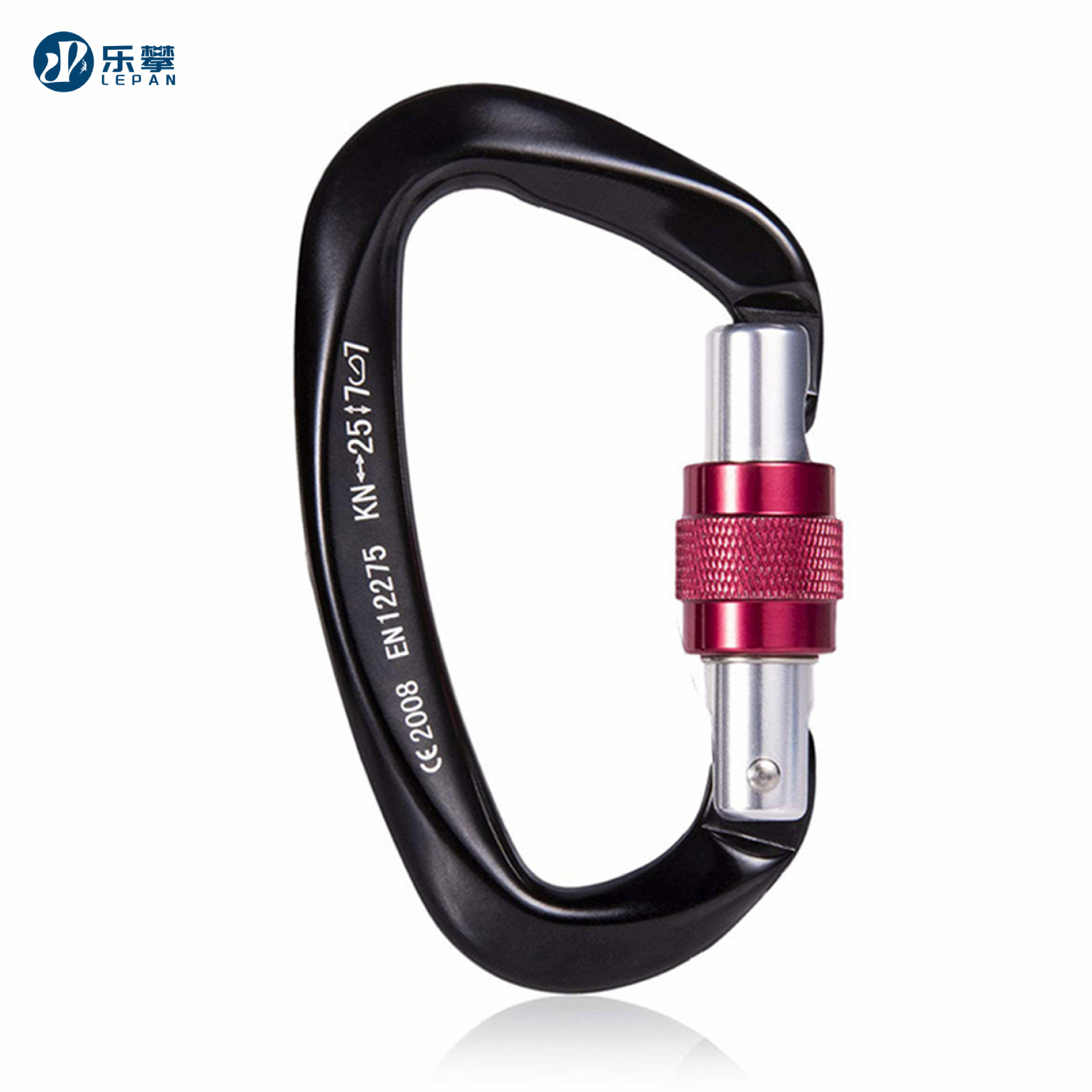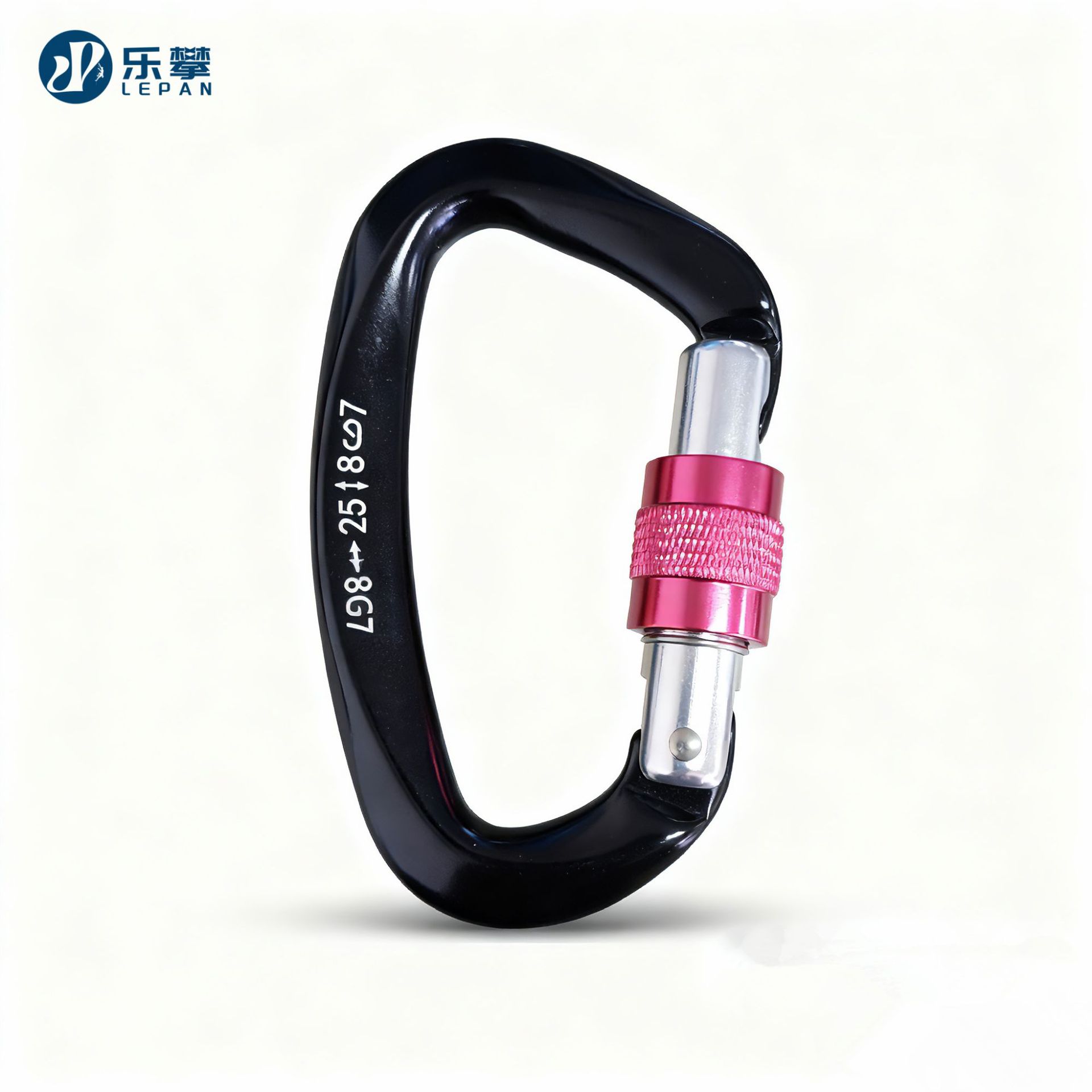 25KN 항공 알루미늄 암벽 등반 메인 잠금 등산 버클 빠른 교수형 D 형 메인 잠금 야외 암벽 등반 장비 공급 안전 잠금 장치