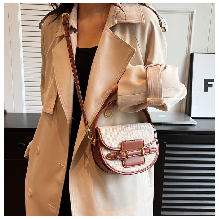 하이 엔드 컬러 대비 안장 가방 여성의 2024 여름 새로운 패션 인기있는 휴대용 작은 광장 가방 어깨 크로스 백