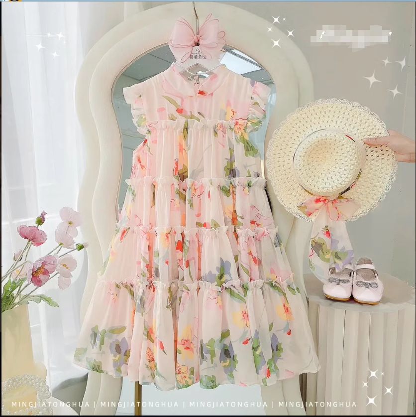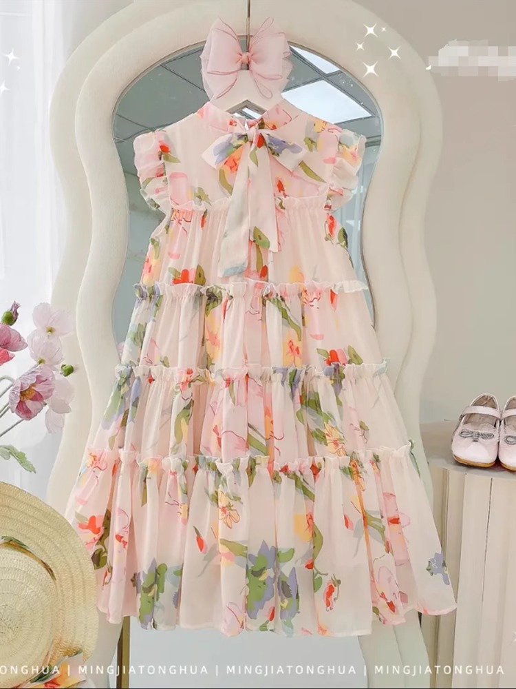 2024 새로운 소녀 원피스 여름 원피스 서양식 어린이 원피스 꽃 공주 원피스 소녀 여름 케이크 원피스스토어 가기