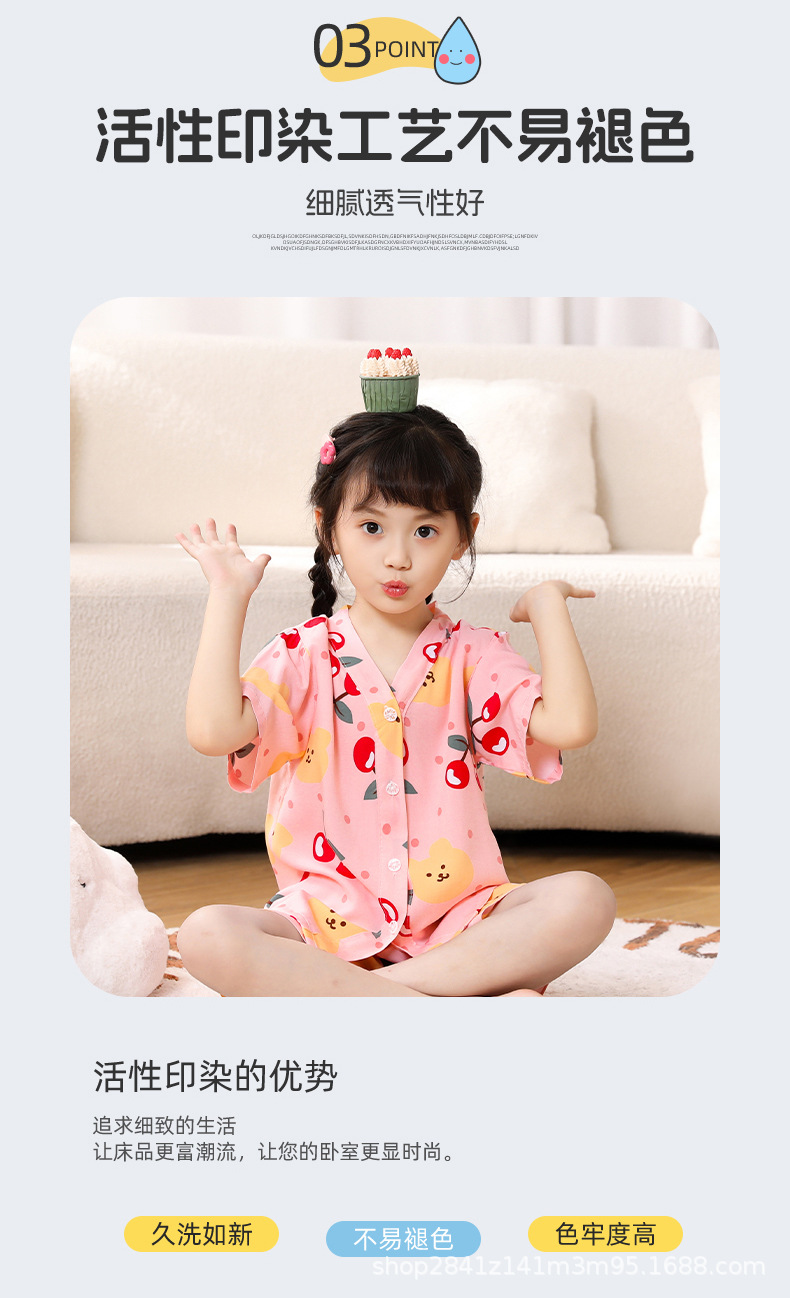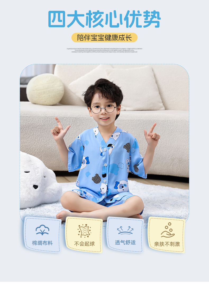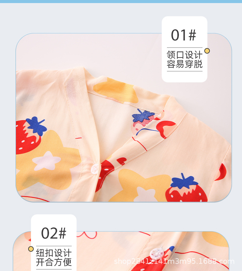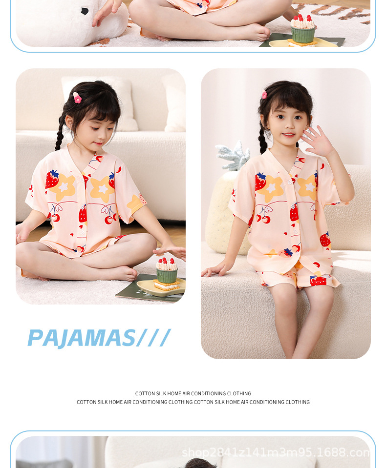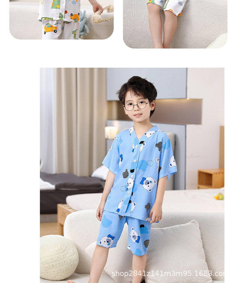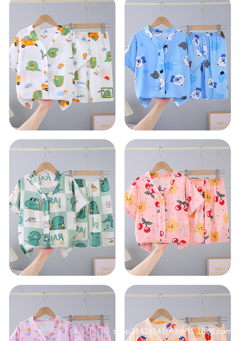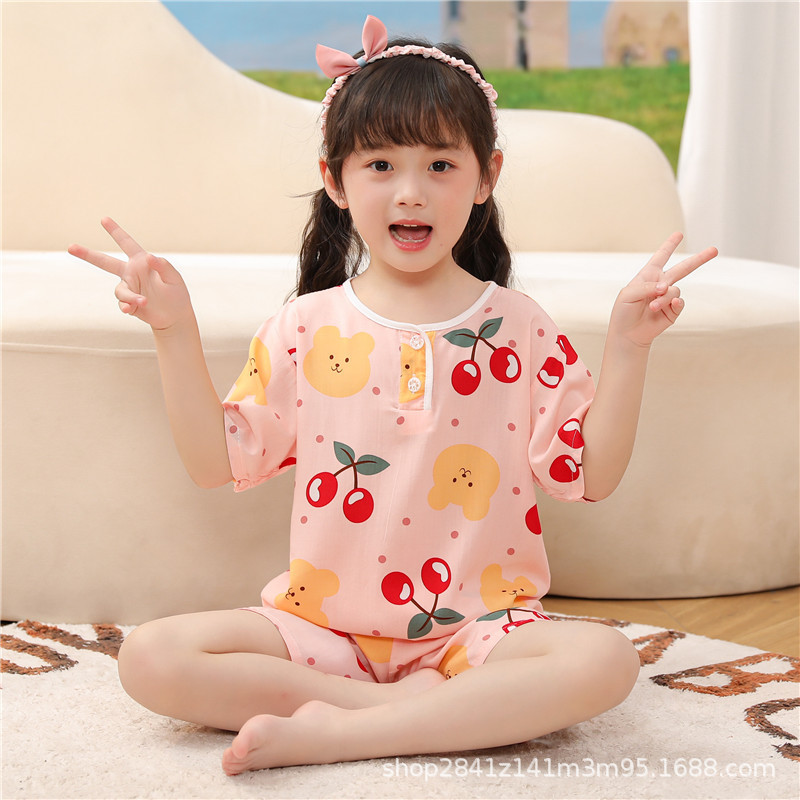 여름 소녀 짧은 면 실크 세트 소년 및 소녀 에어컨 의류 잠옷 아기의 홈 의류 인공 면 안티 모기 의류스토어 가기