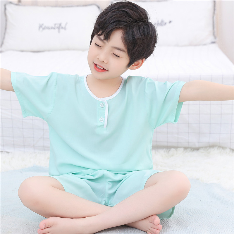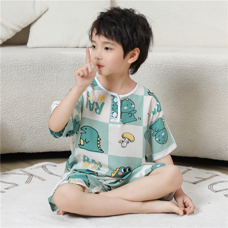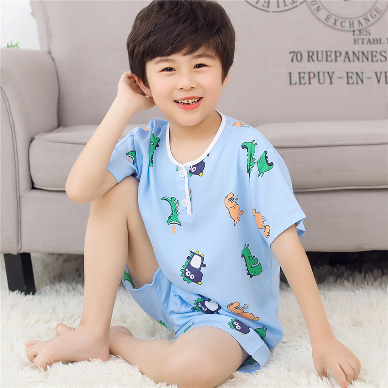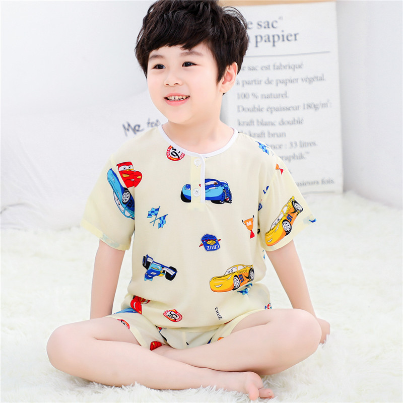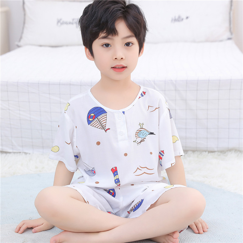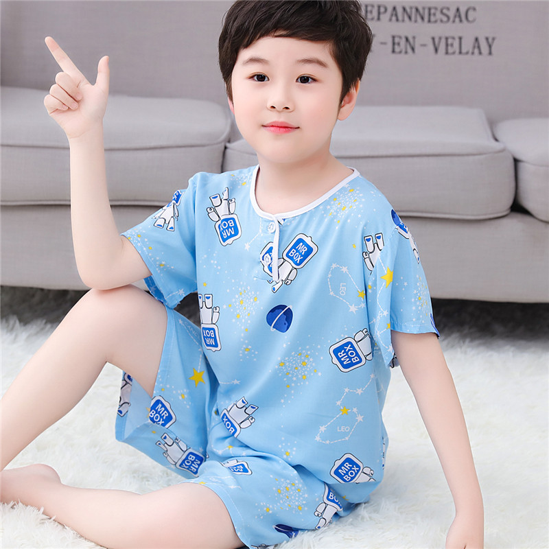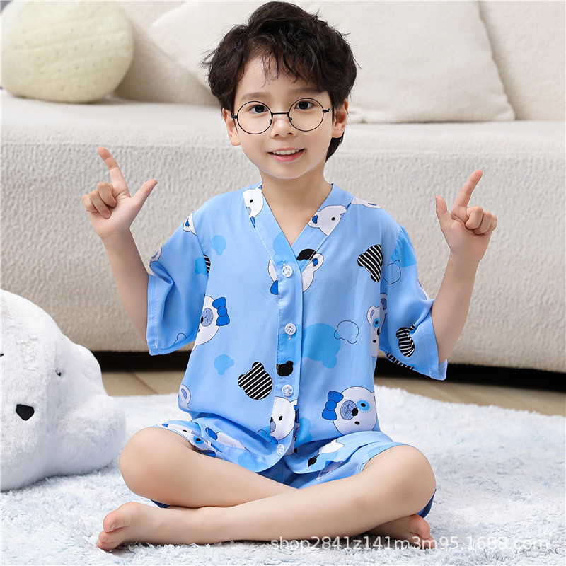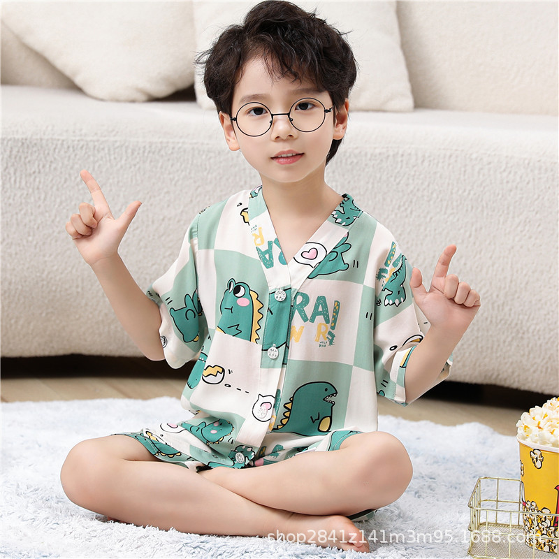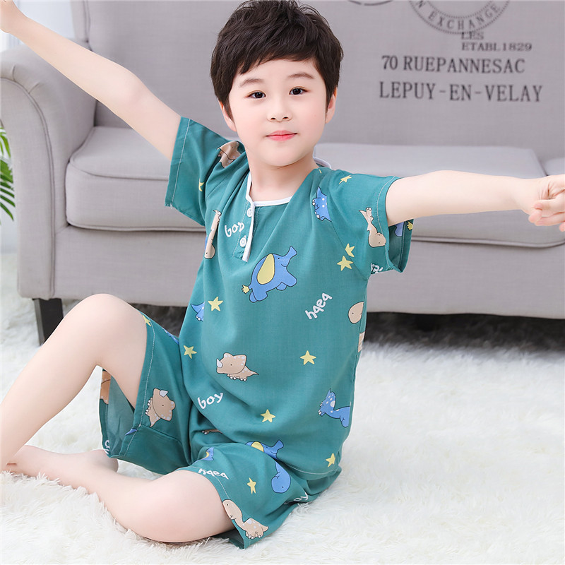 여름 소녀 짧은 면 실크 세트 소년 및 소녀 에어컨 의류 잠옷 아기의 홈 의류 인공 면 안티 모기 의류스토어 가기
