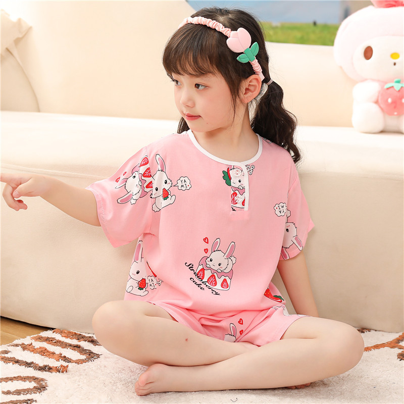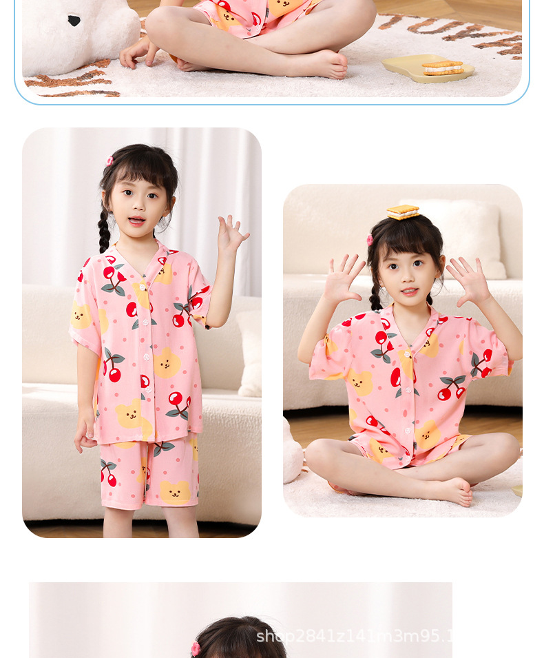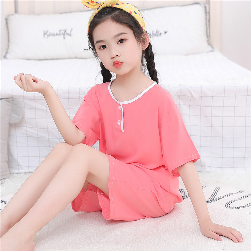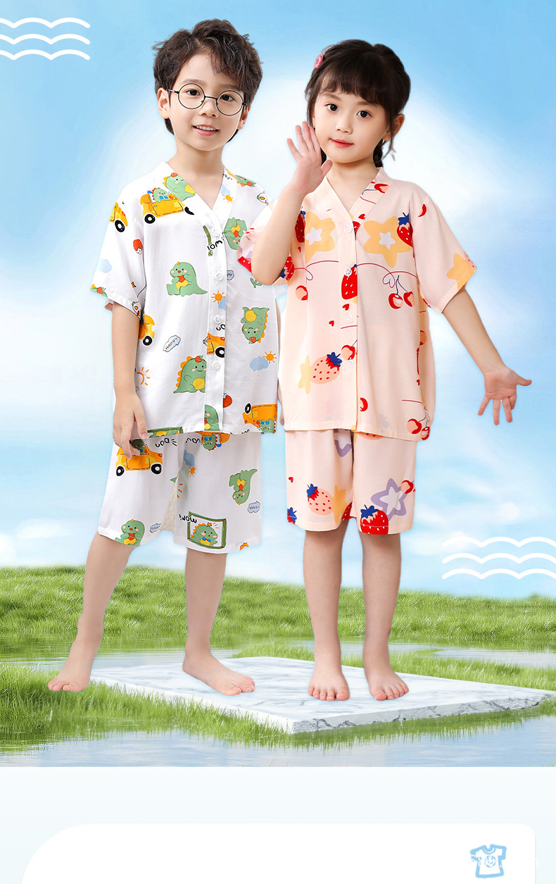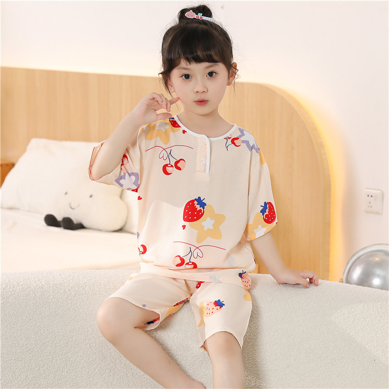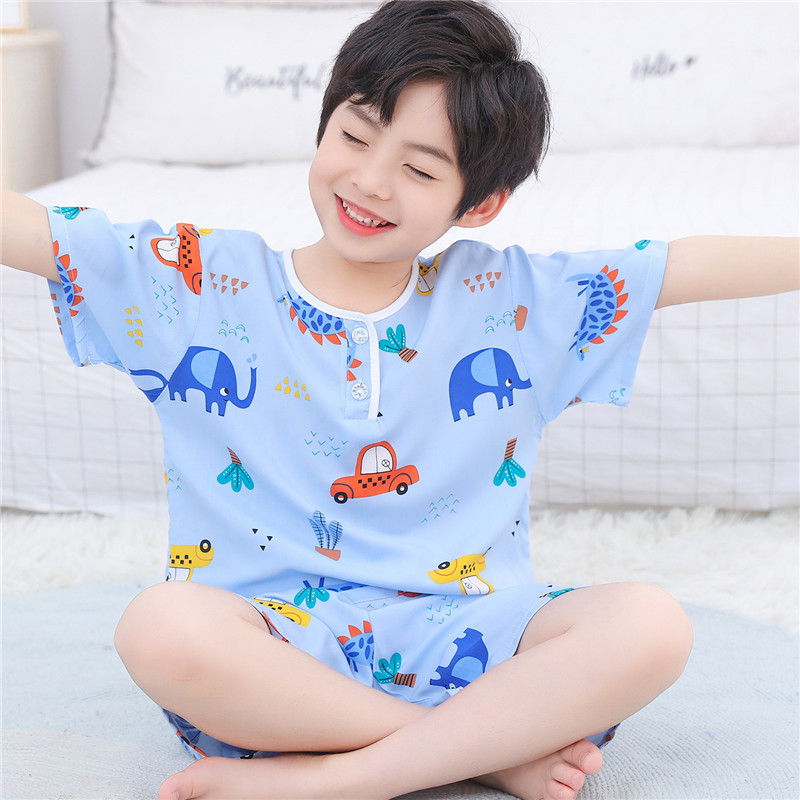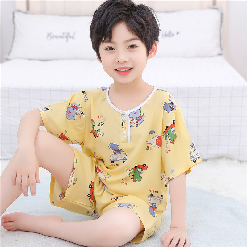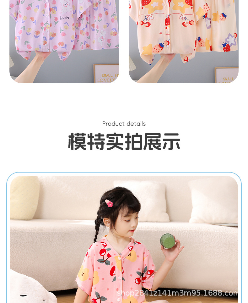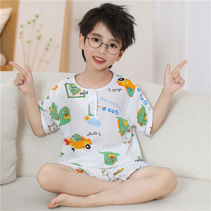 여름 소녀 짧은 면 실크 세트 소년 및 소녀 에어컨 의류 잠옷 아기의 홈 의류 인공 면 안티 모기 의류스토어 가기