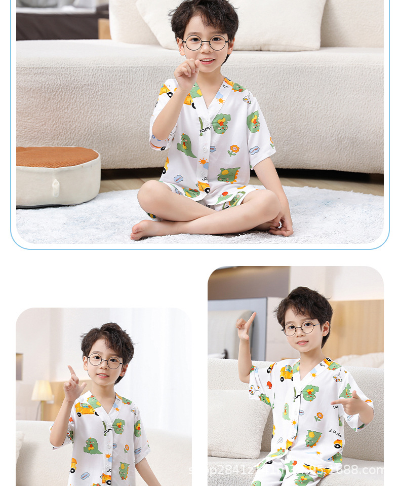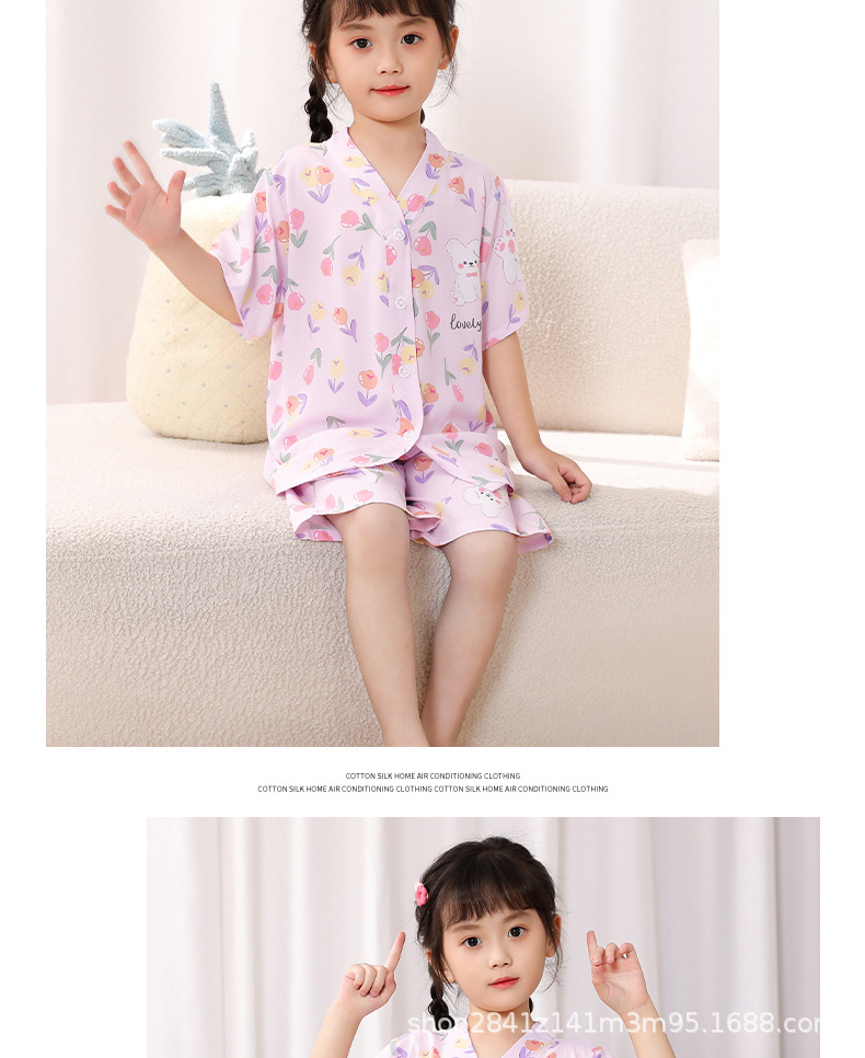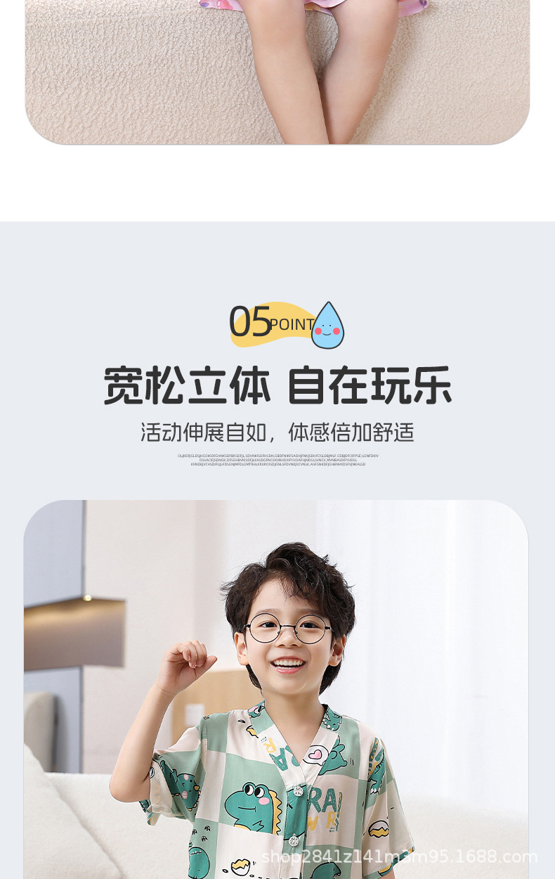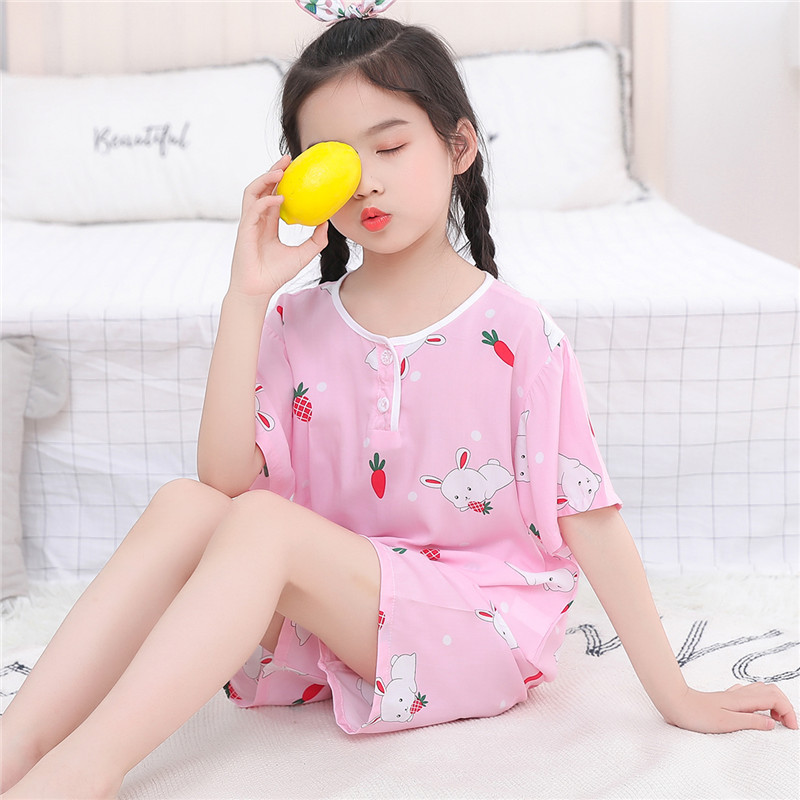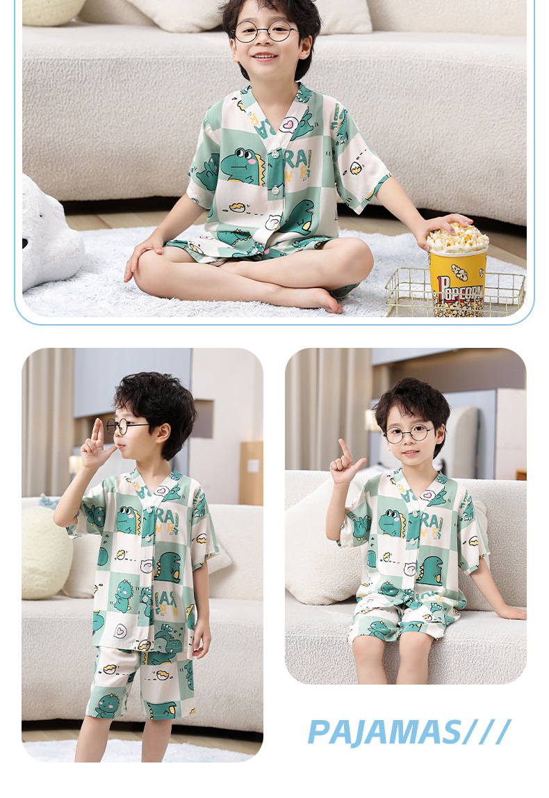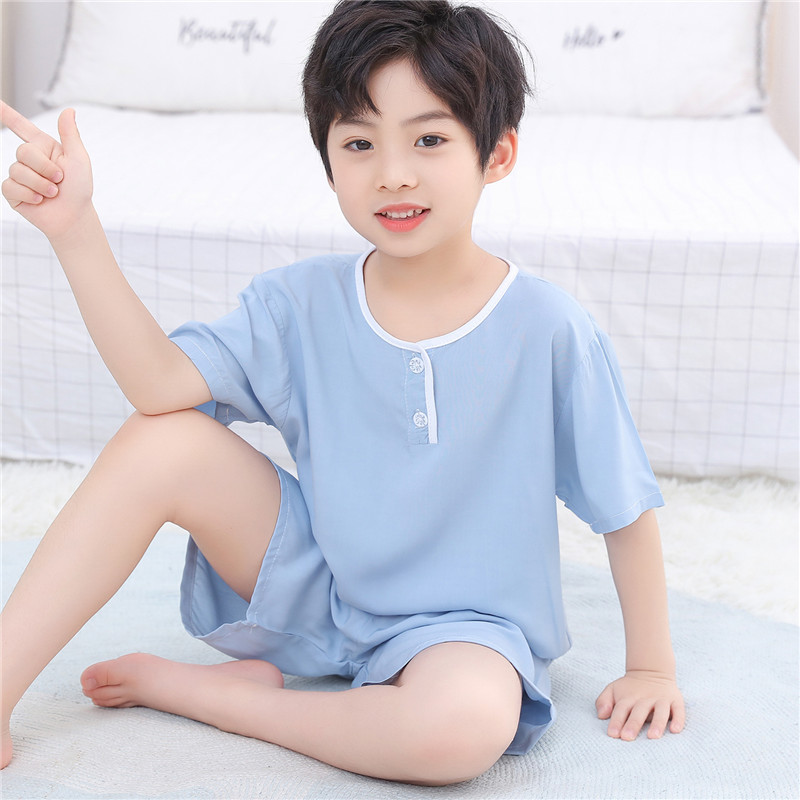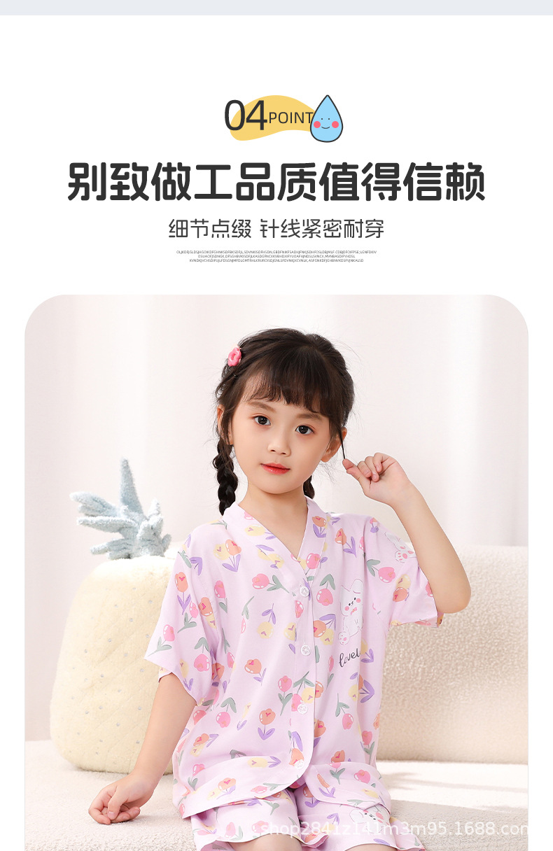 여름 소녀 짧은 면 실크 세트 소년 및 소녀 에어컨 의류 잠옷 아기의 홈 의류 인공 면 안티 모기 의류스토어 가기