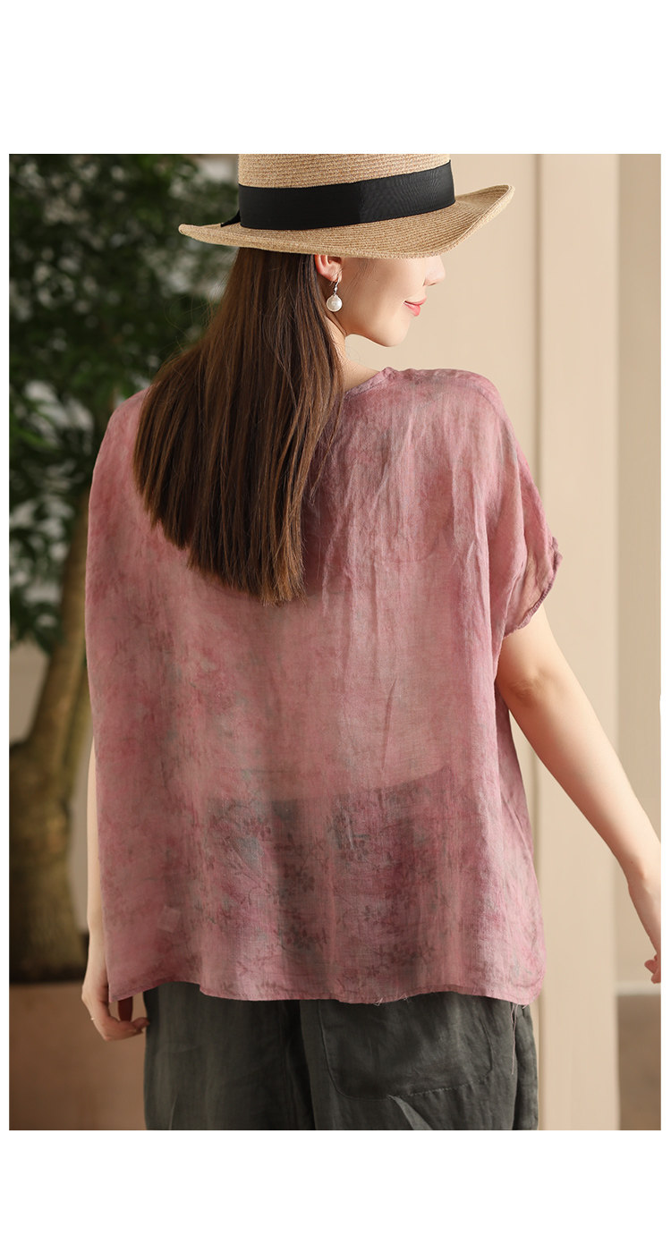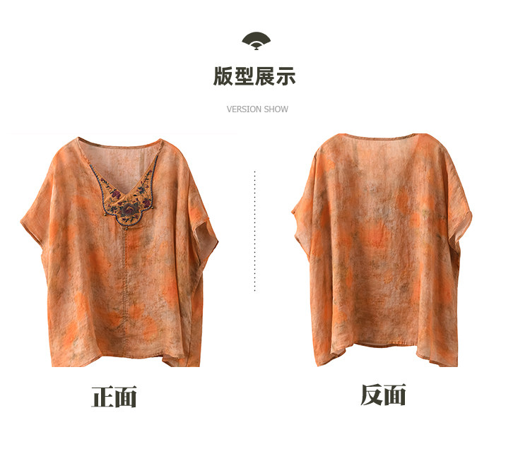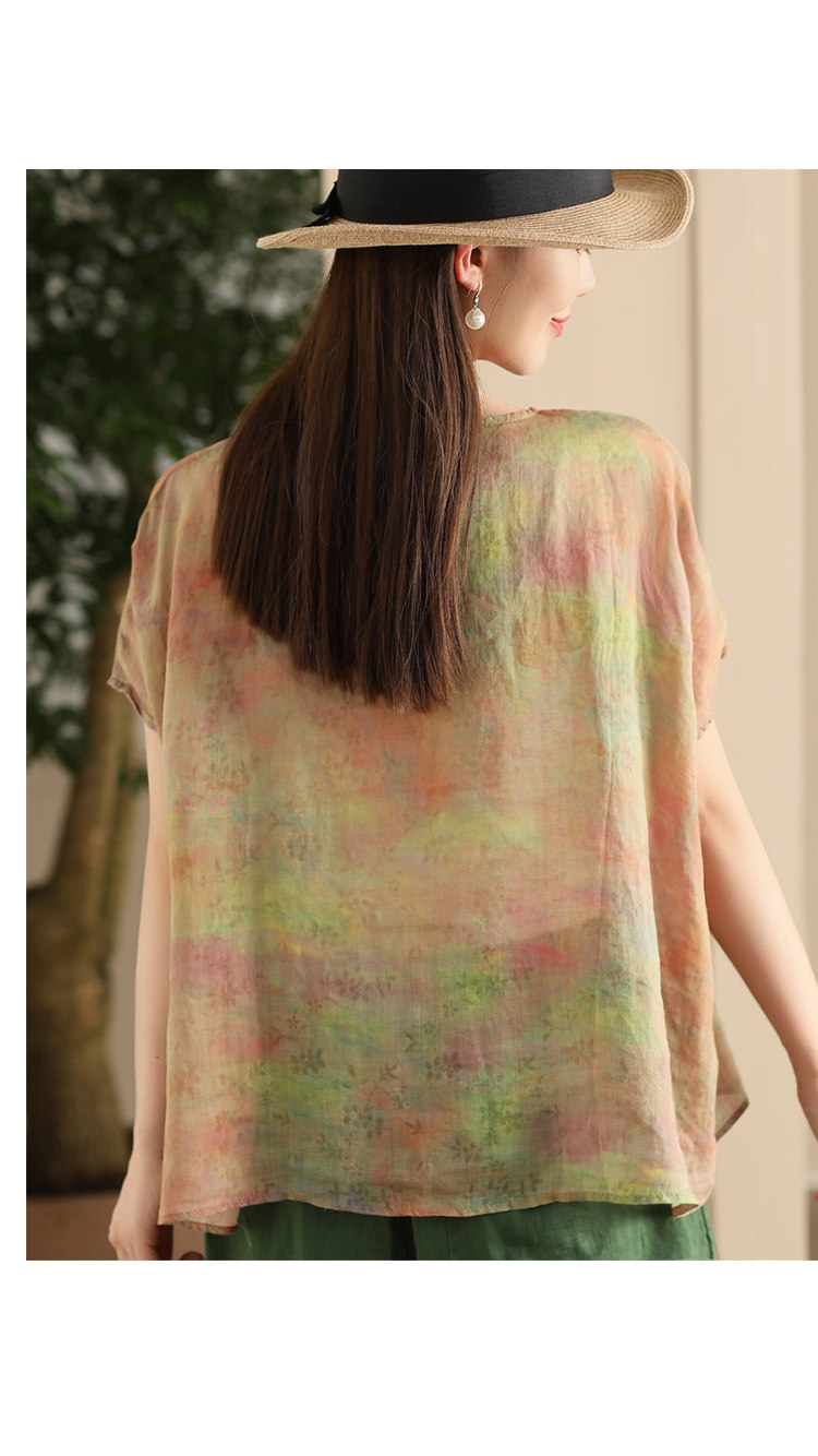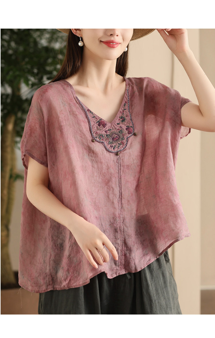 빈티지 민족 자수 라미 셔츠 프라이드 컬러 인쇄 된 배트 소매 셔츠 우아한 풀오버 탑스토어 가기