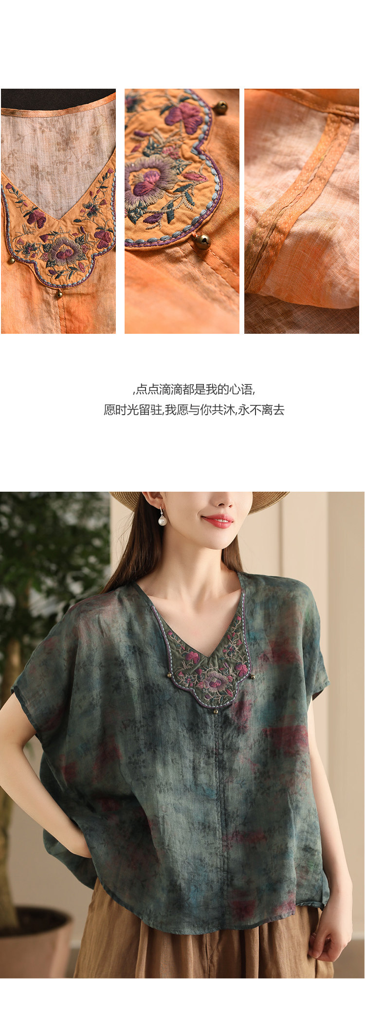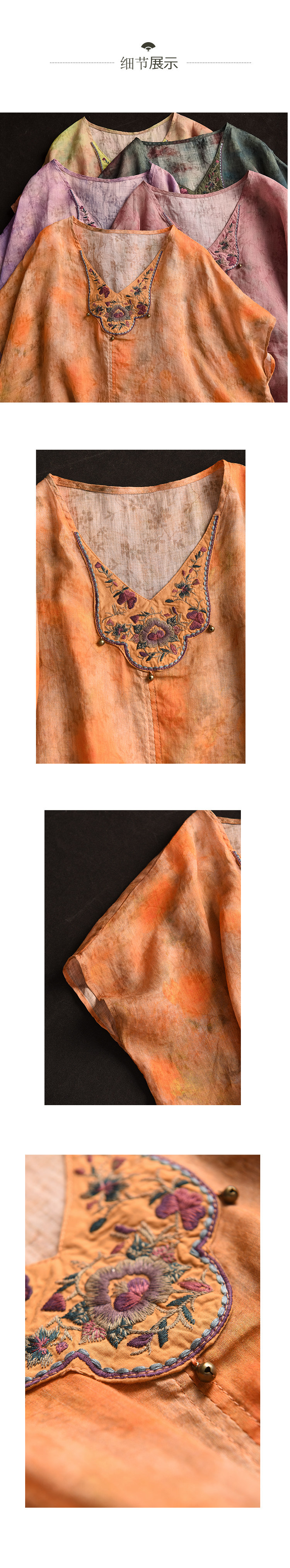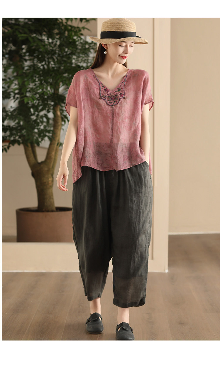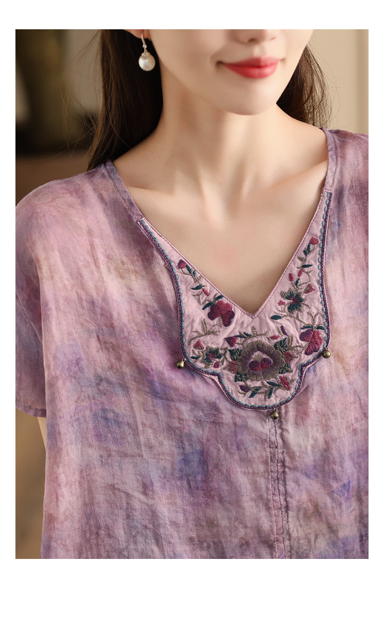 빈티지 민족 자수 라미 셔츠 프라이드 컬러 인쇄 된 배트 소매 셔츠 우아한 풀오버 탑스토어 가기