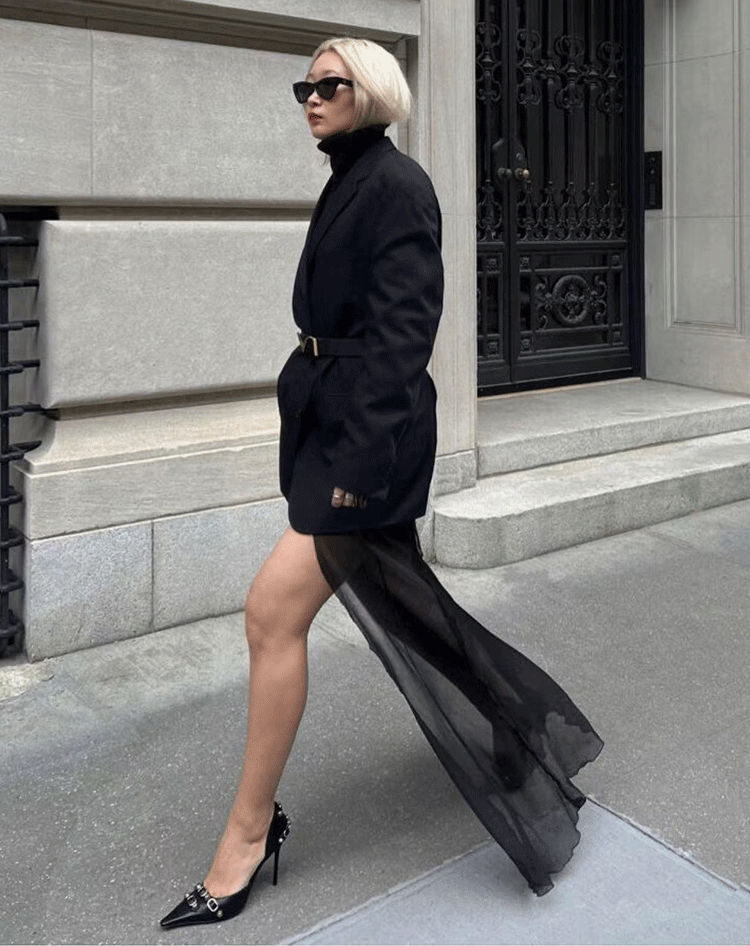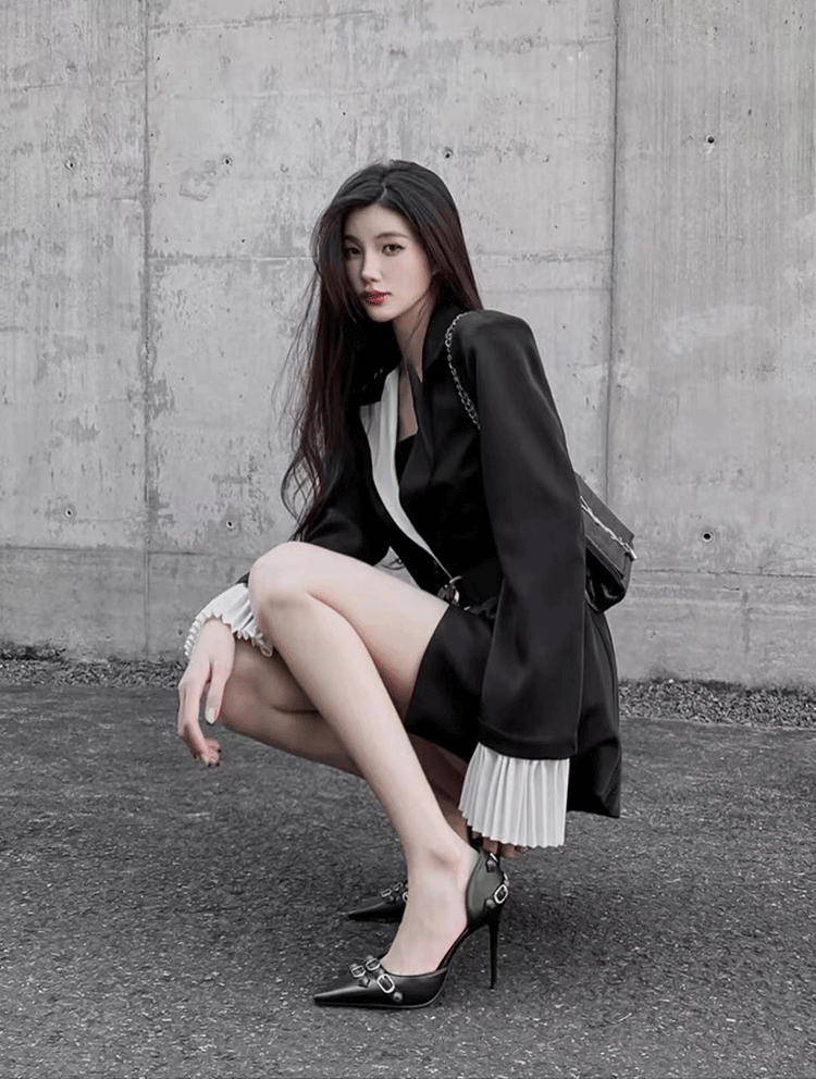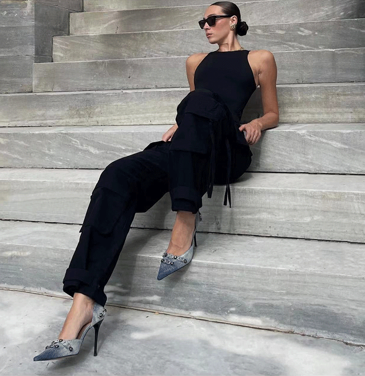 유럽과 미국의 2024 새로운 여름 작은 광장 중공 하이힐 스틸레토 리벳 블랙 섹시한 뜨거운 소녀 샌들 여성