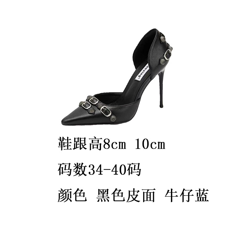 유럽과 미국의 2024 새로운 여름 작은 광장 중공 하이힐 스틸레토 리벳 블랙 섹시한 뜨거운 소녀 샌들 여성스토어 가기