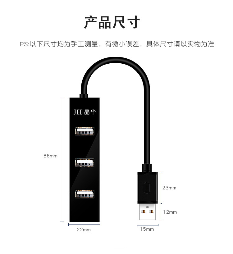 Jinghua USB2.0 허브 일대일 허브 멀티 포트 스플리터 노트북 USB 확장 케이블