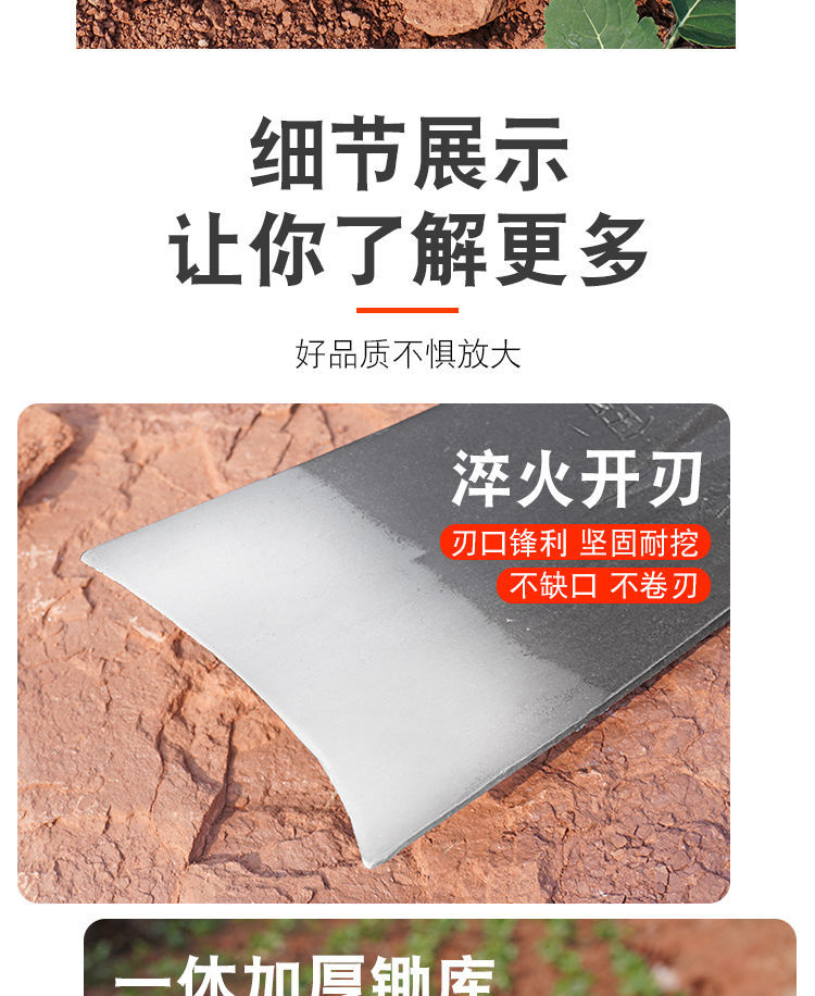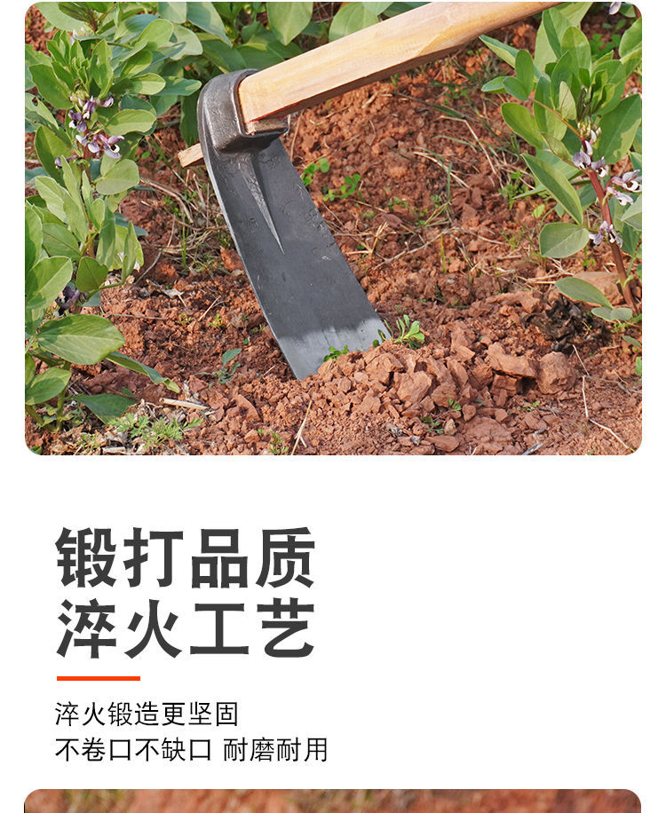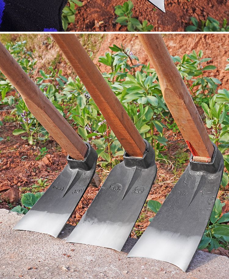 Hoe 구식 모든 강철 농업 심기 필드 나무 손잡이 갈퀴 야채 잡초 및 현장 야외 파기 및 단조 호 도구스토어 가기