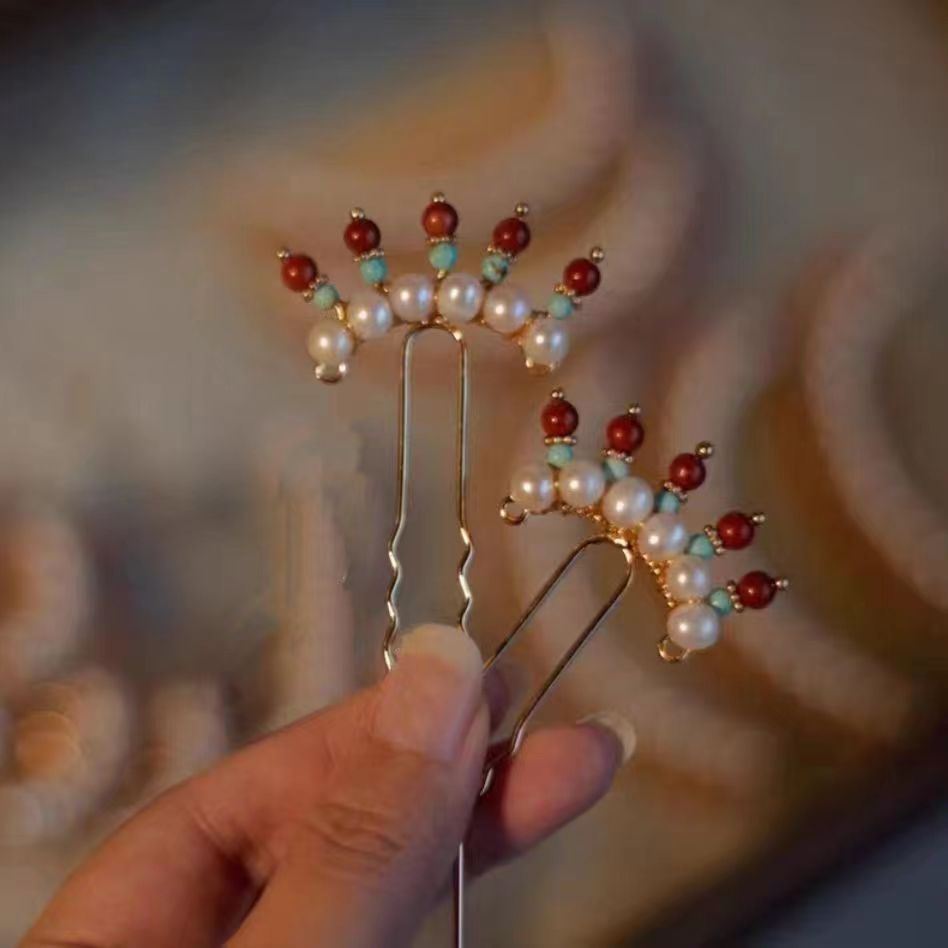 중국 스타일 머리 머리핀 한푸 꾸밈 작은 머리핀 골동품 탕 스타일 꽃 옆 작은 머리핀 명나라 스타일 올매치 액세서리 헤어핀