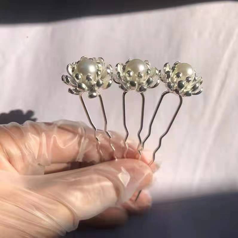 • 3겹 꽃진주 머리핀 실버 1개