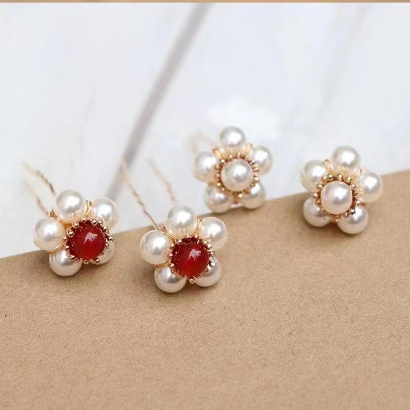 • 작은꽃진주머리핀[레드] 1개