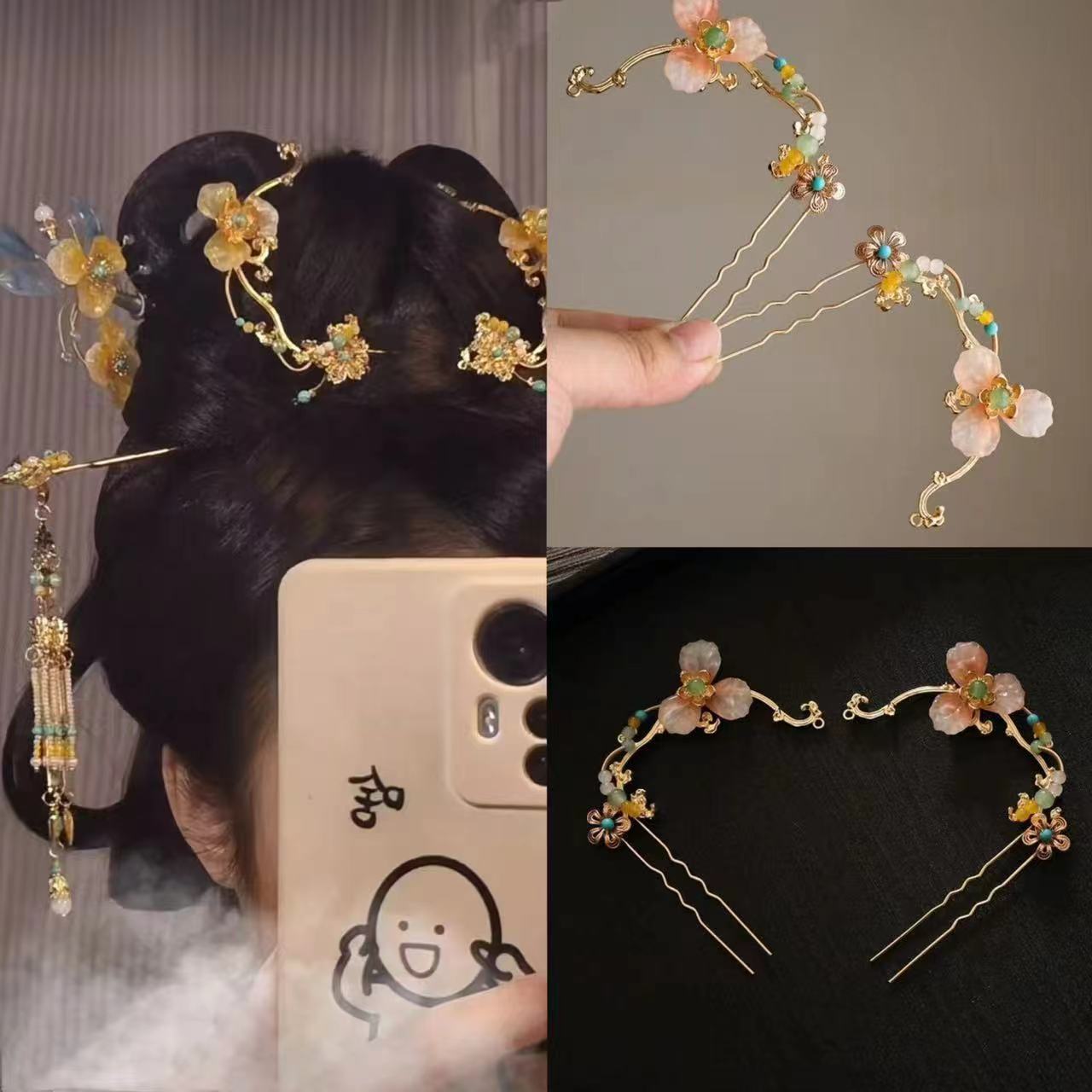 중국 스타일 머리 머리핀 한푸 꾸밈 작은 머리핀 골동품 탕 스타일 꽃 옆 작은 머리핀 명나라 스타일 올매치 액세서리 헤어핀스토어 가기