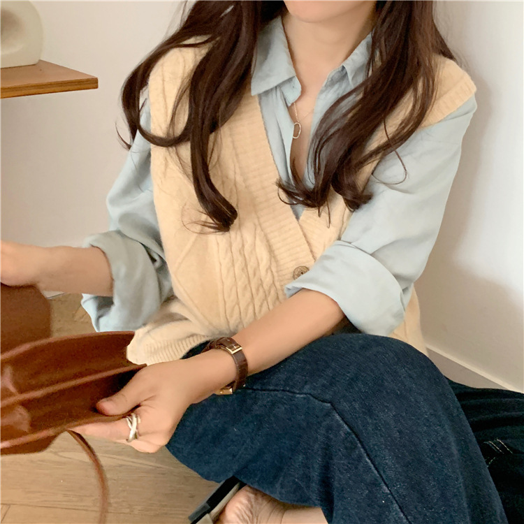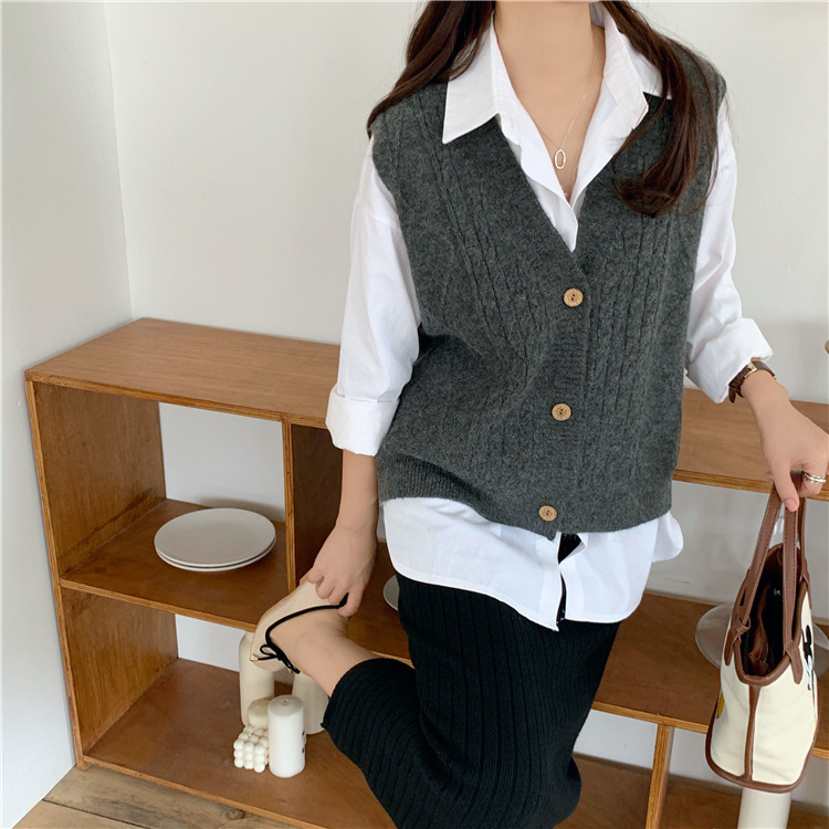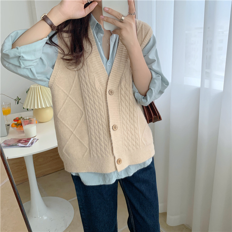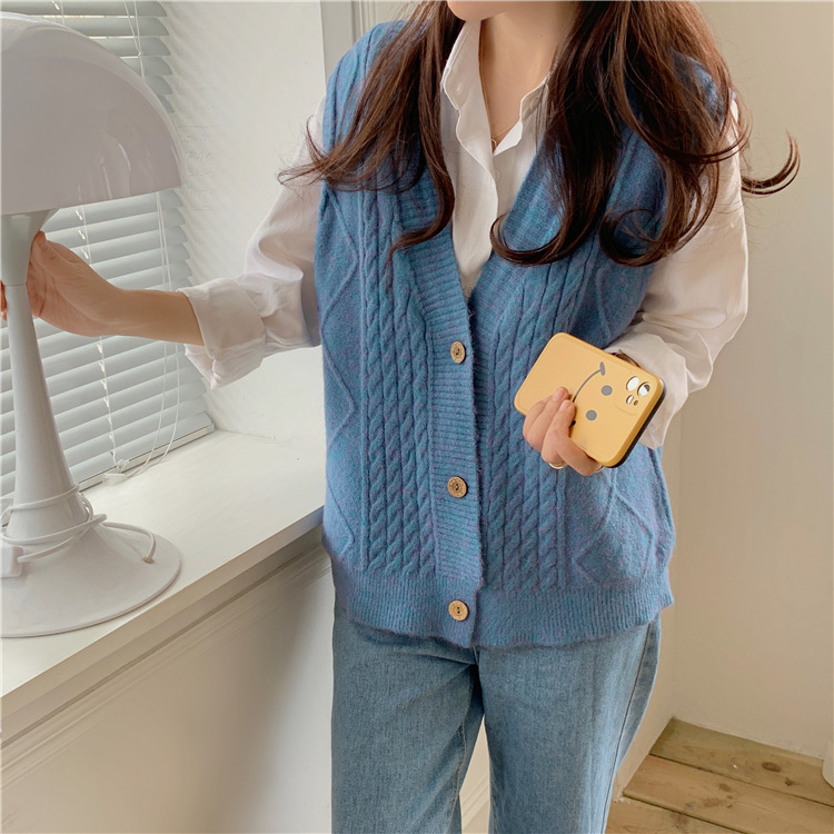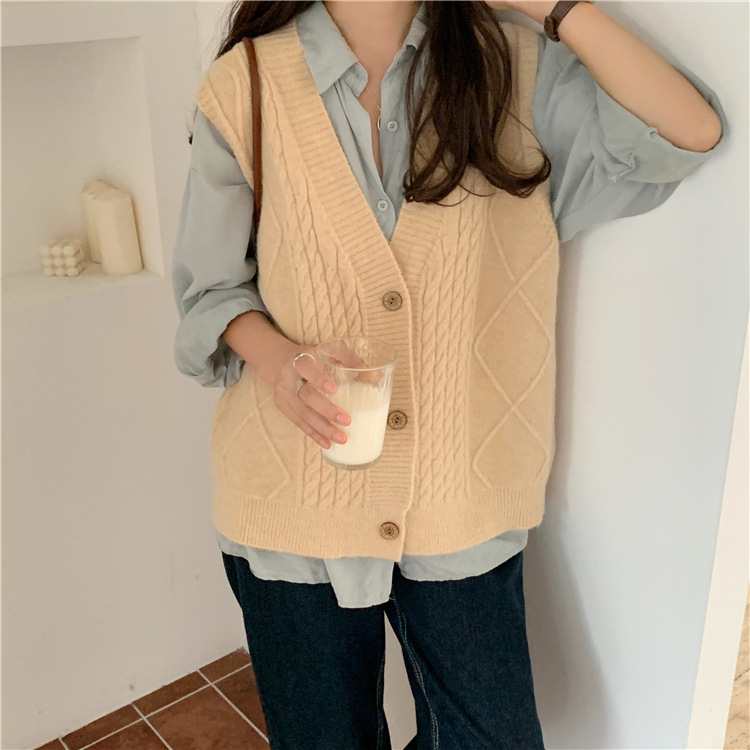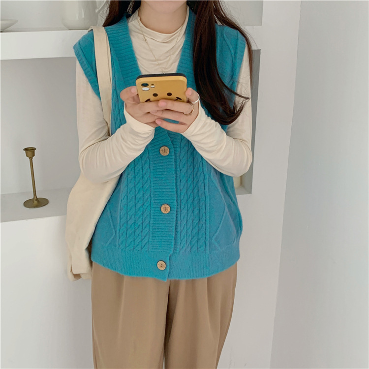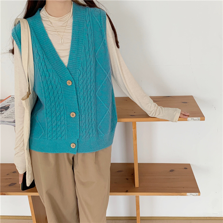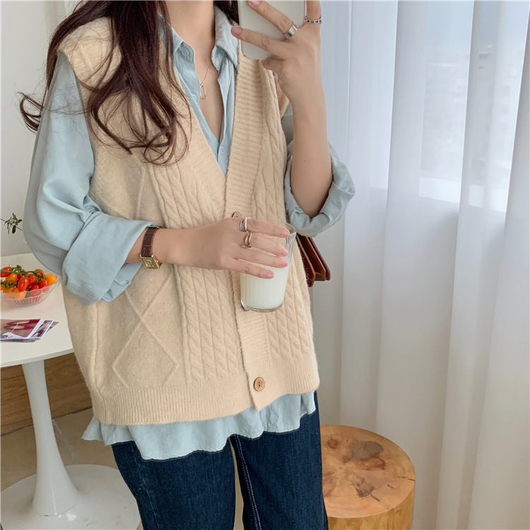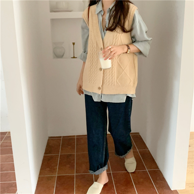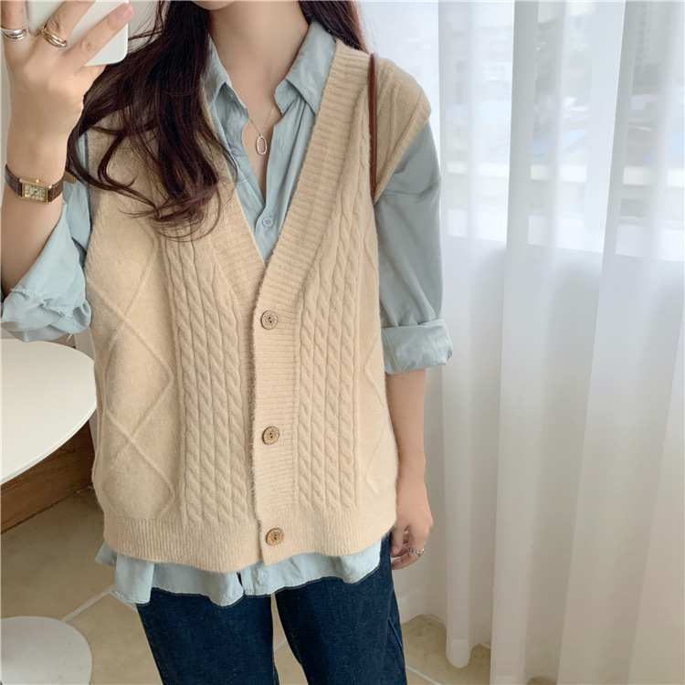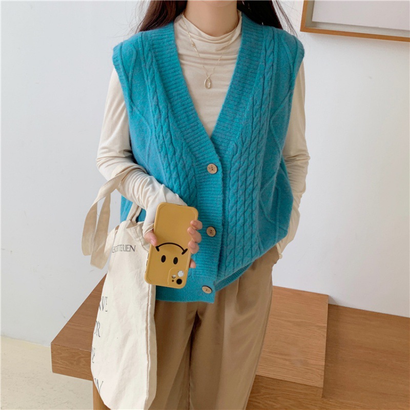 24 초가을 새 여자 스웨터 니트 카디건 조끼 슬리밍 올매치 한국 루즈 V 넥 민소매 여성 탑스토어 가기