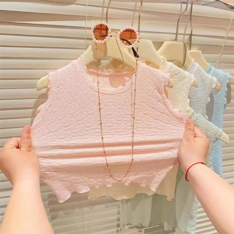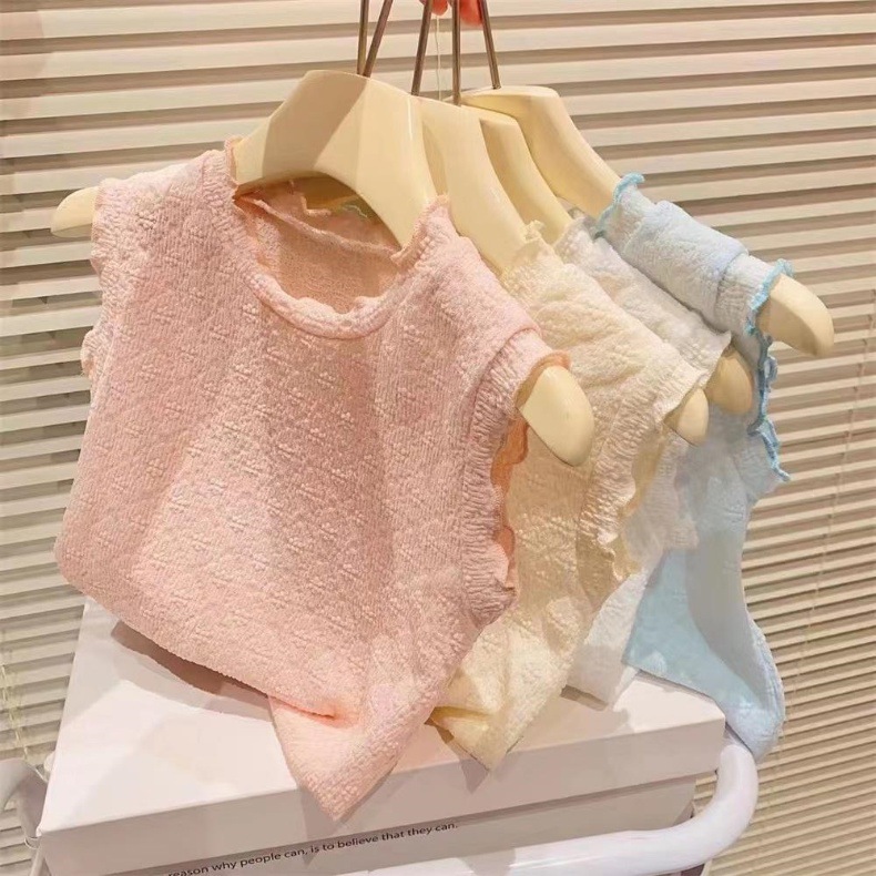 소녀의 서양식 조끼 새로운 여름 어린이 귀 민소매 티셔츠 여름 원피스 아기 소녀의 귀여운 달콤한 탑