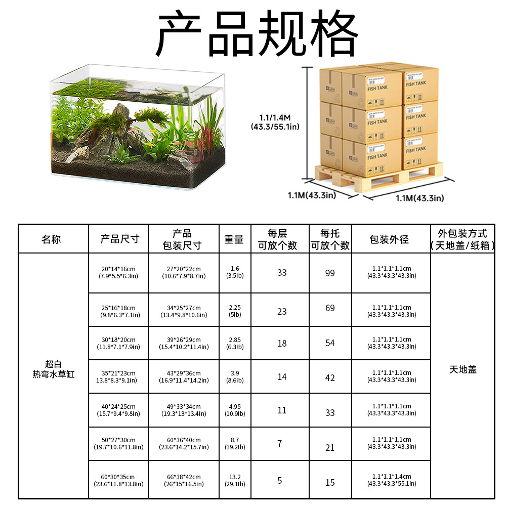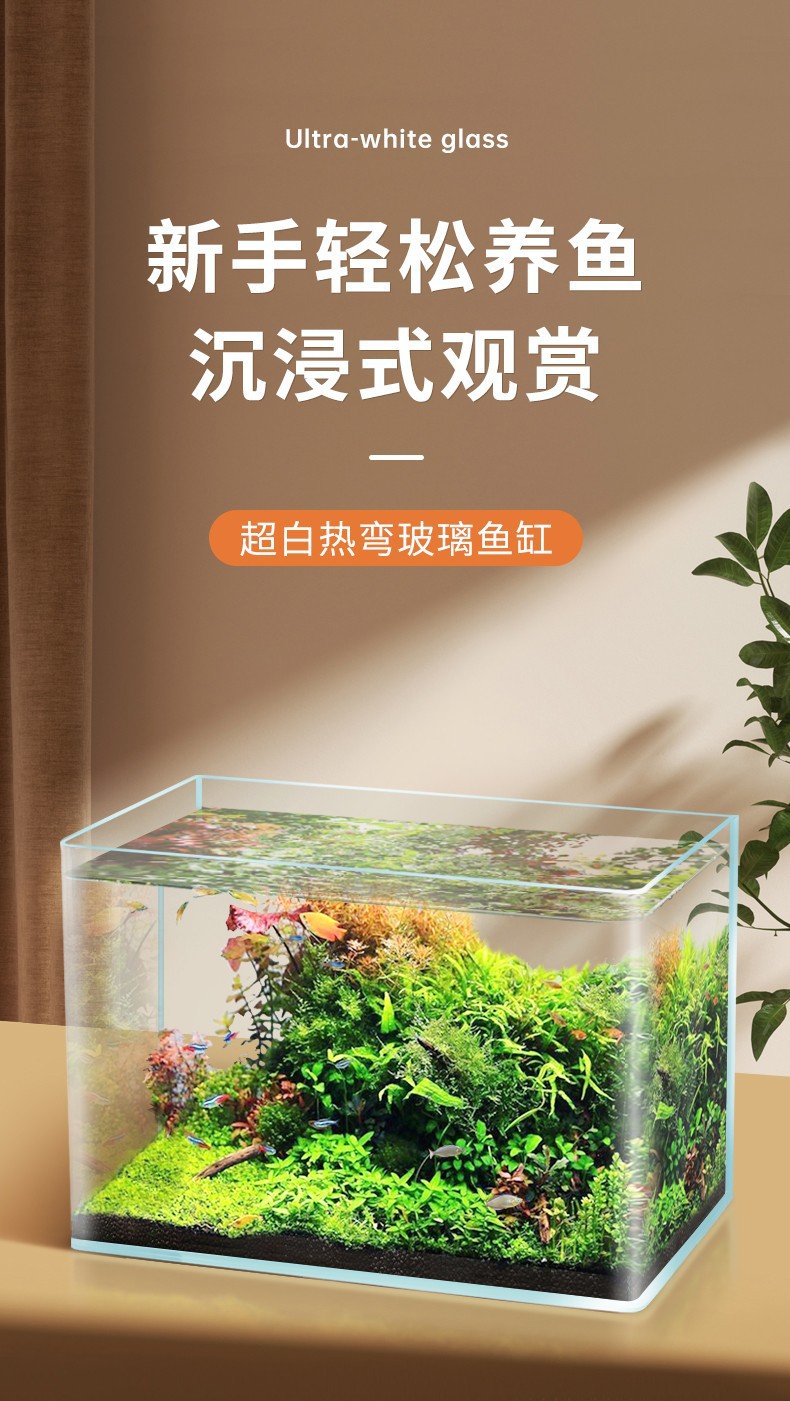 Yee 울트라 화이트 유리 어항 뜨거운 굽힘 작은 거실 생태 거북이 탱크 금붕어 게으른 풍경 물 잔디 탱크 국경