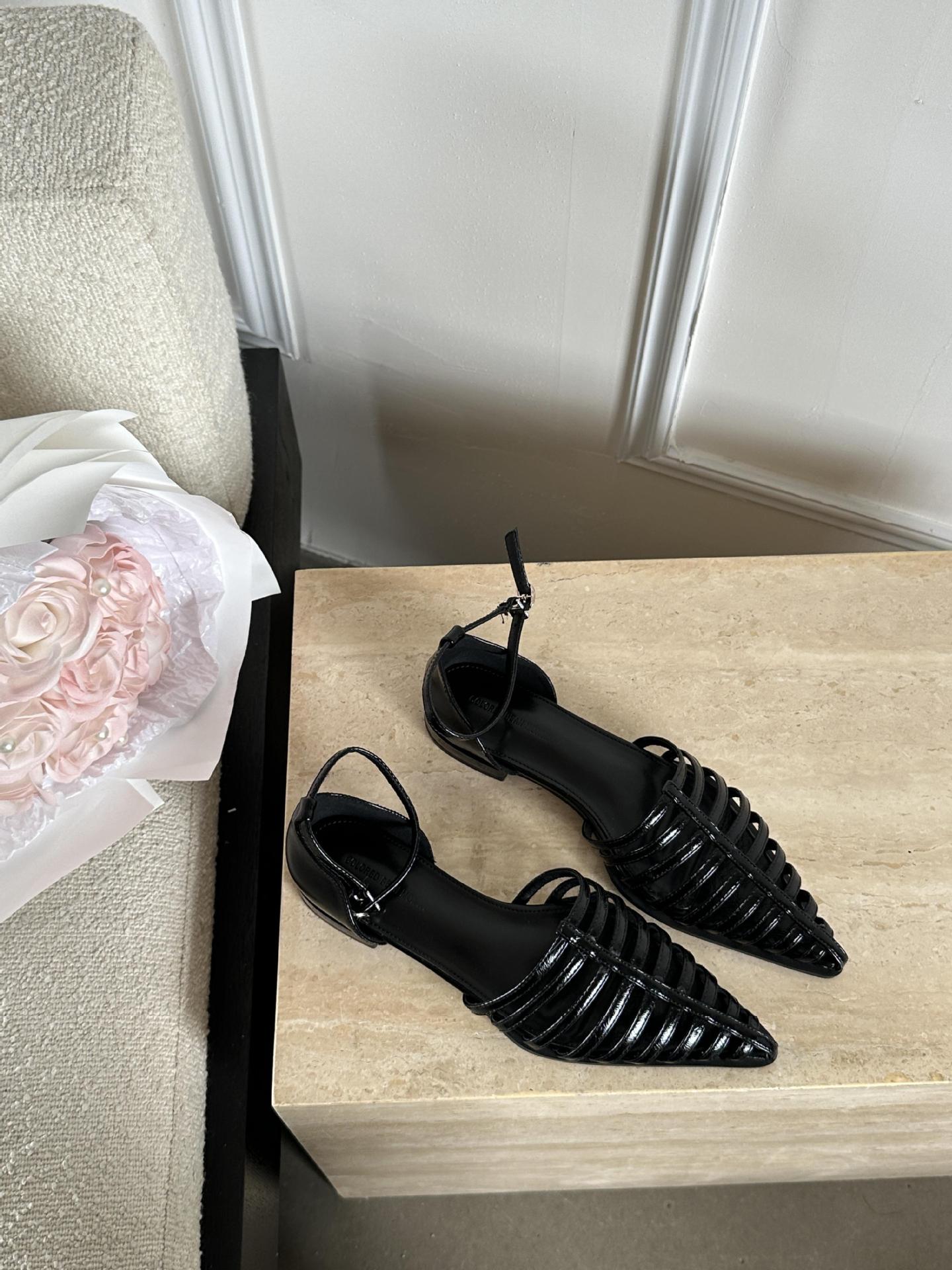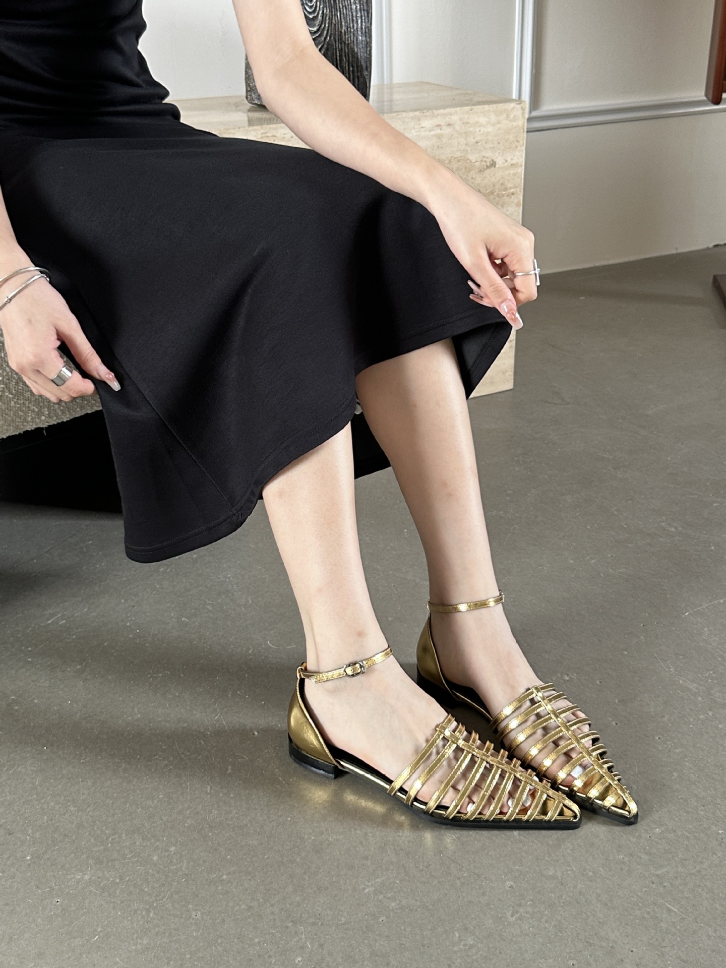 2024 여름 새로운 기질 포인팅 디자인 틈새 통기성 얕은 입 패션 할로우 플랫 여성 신발스토어 가기