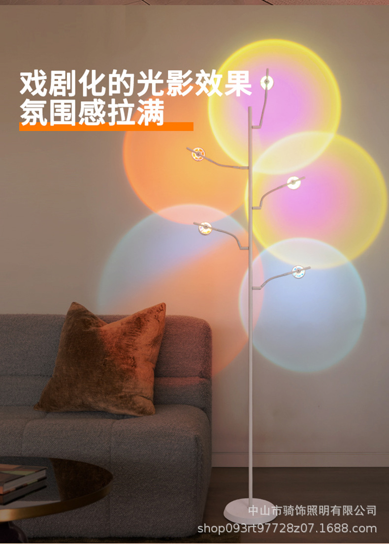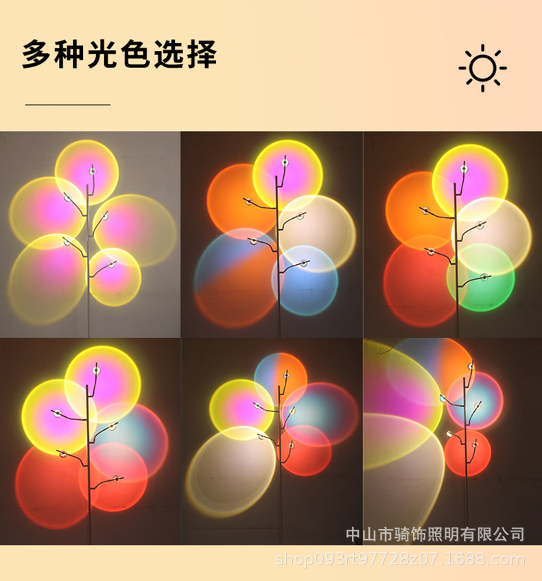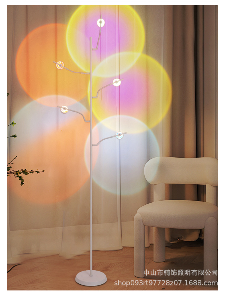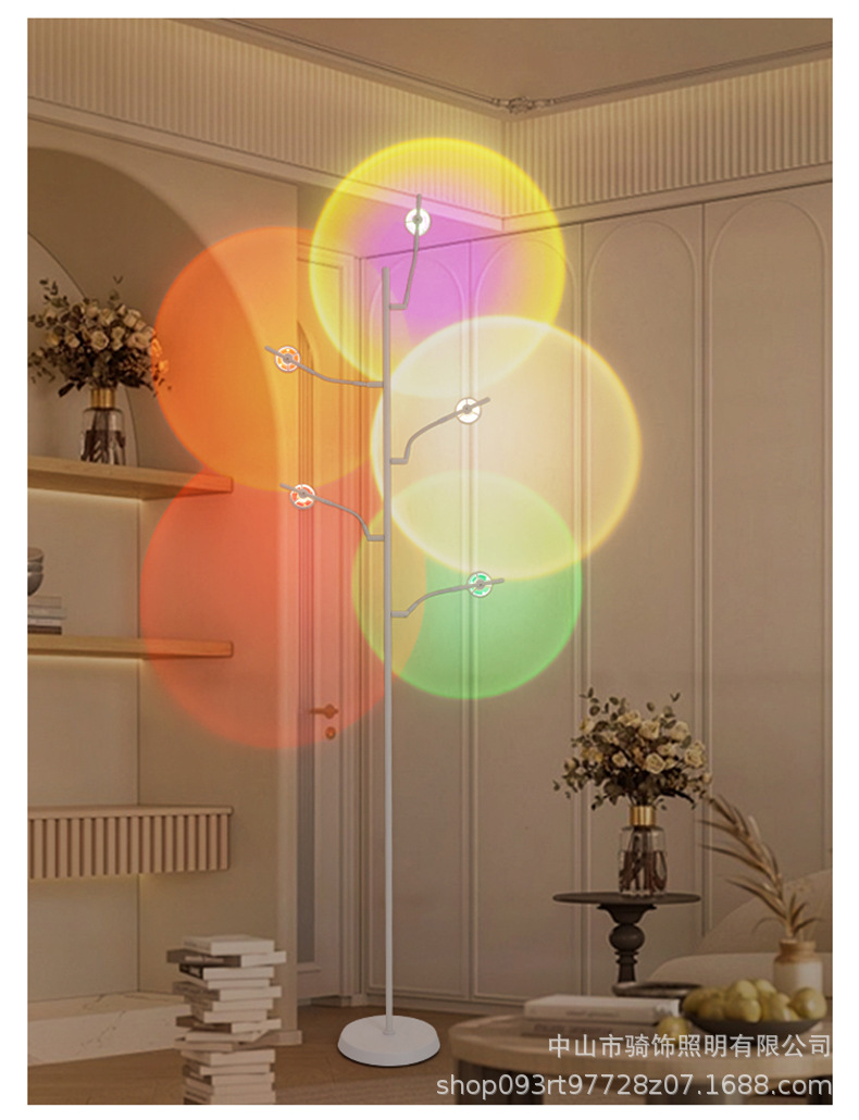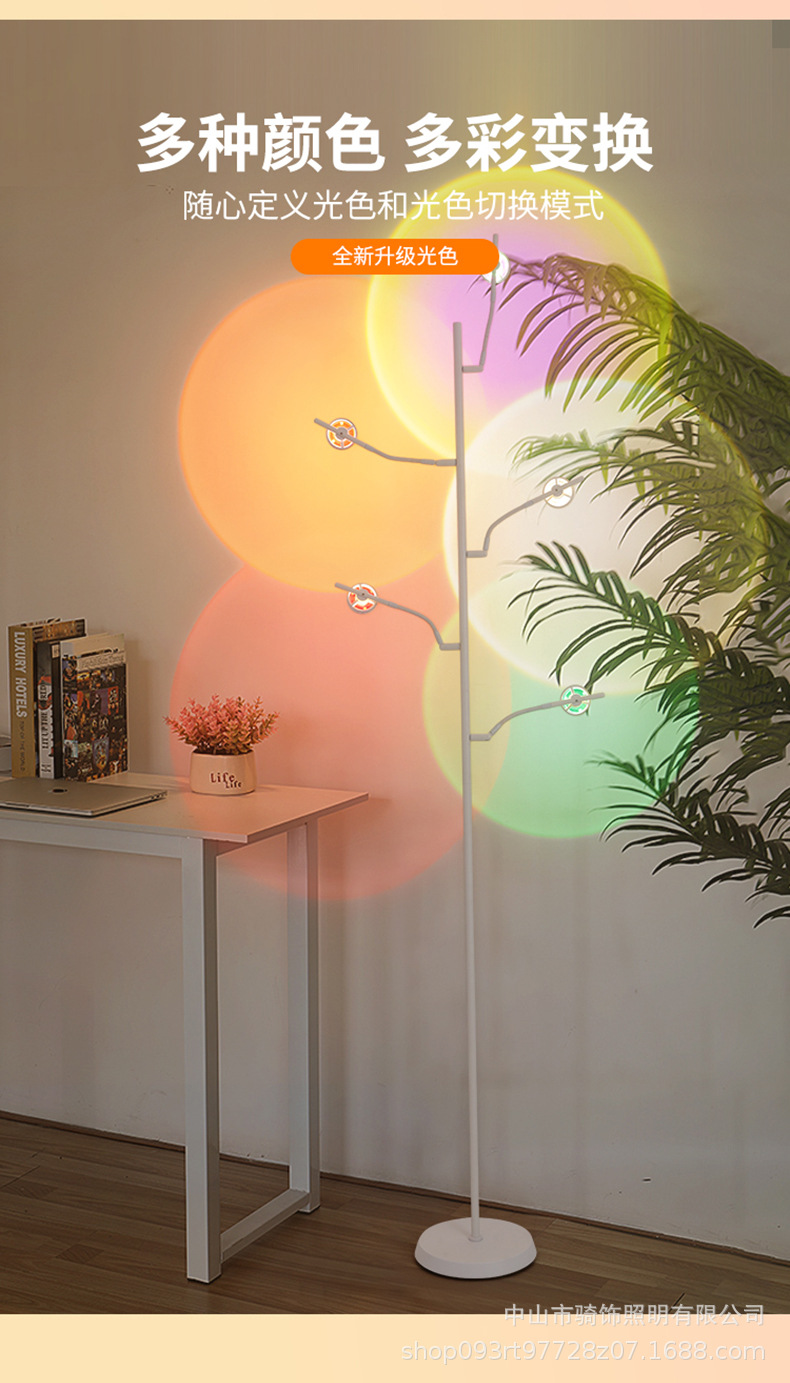 • 5 개의 선셋 레드 회전 분위기 플로어 램프 (흰색) 12 색 카드