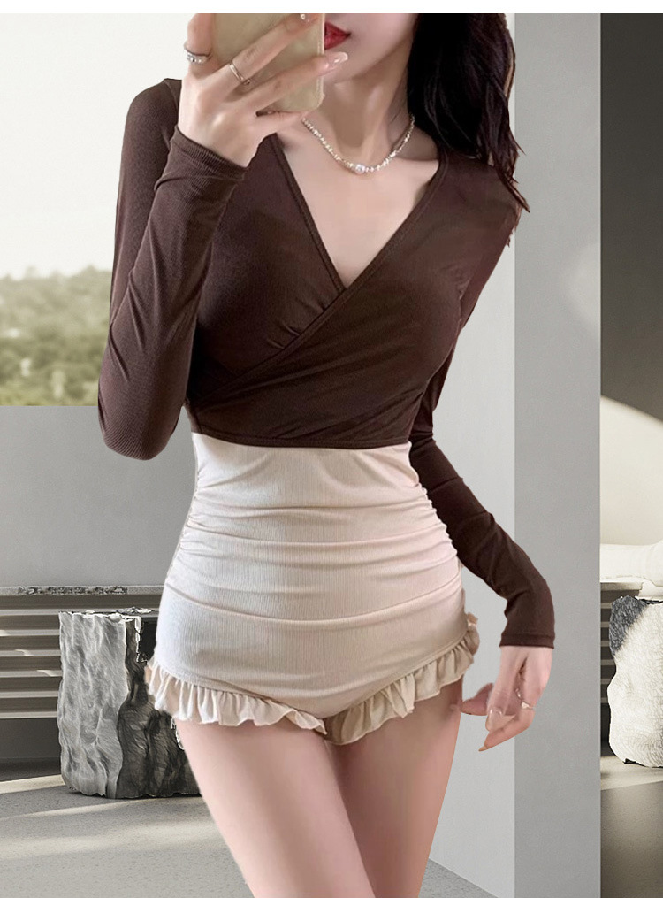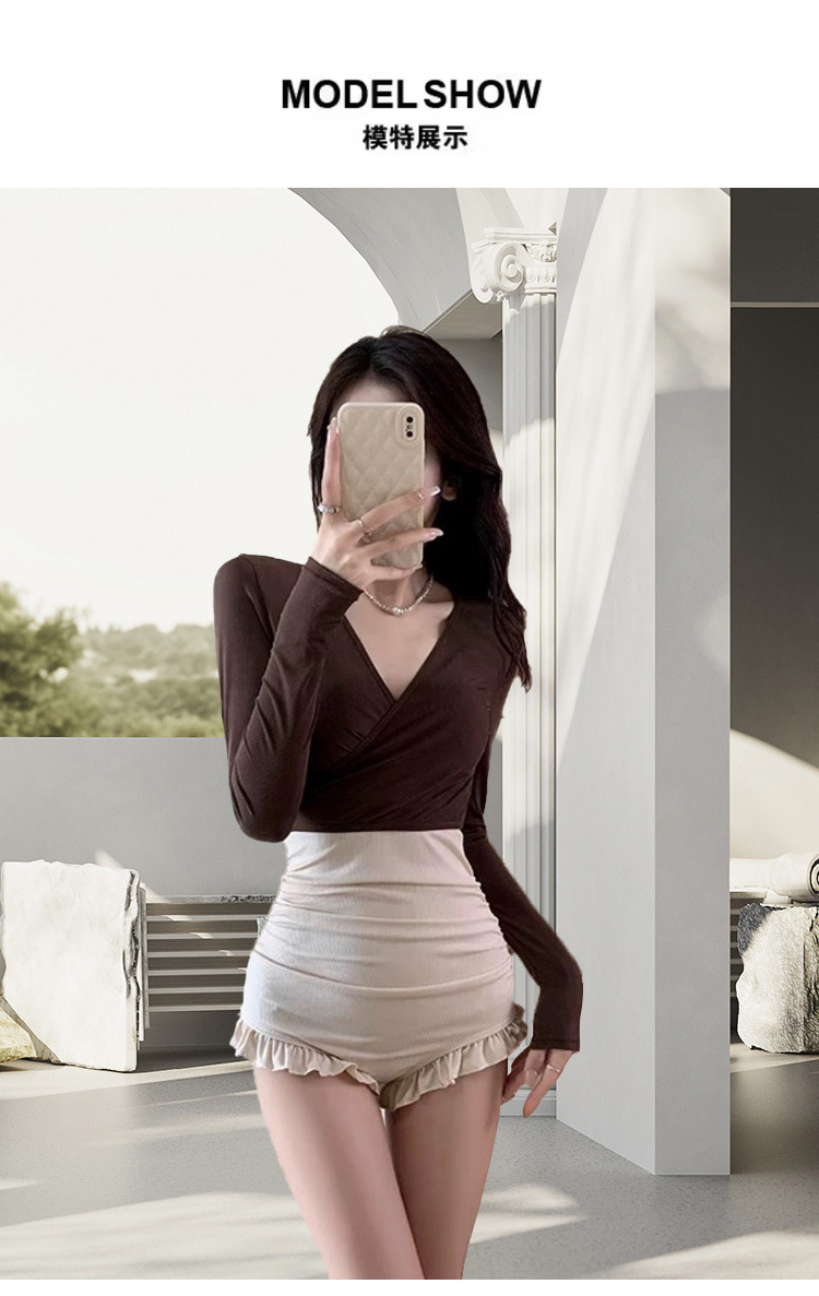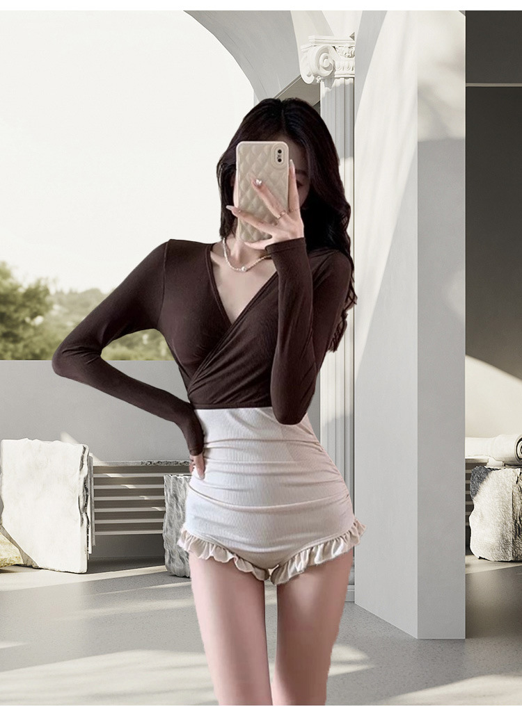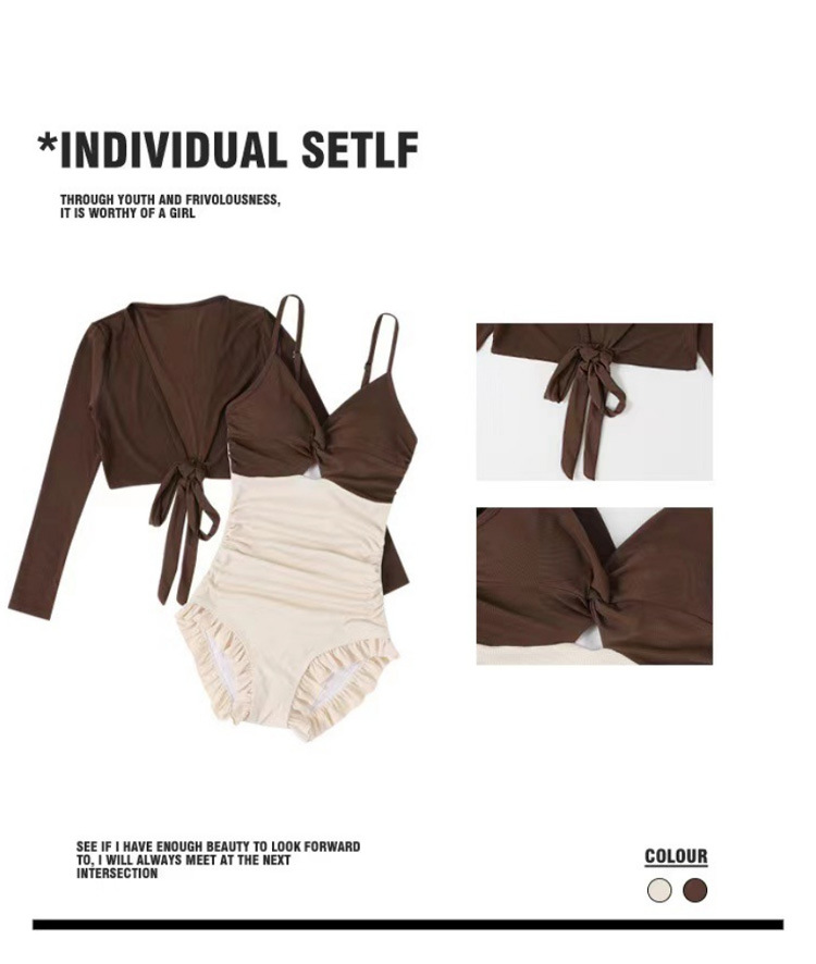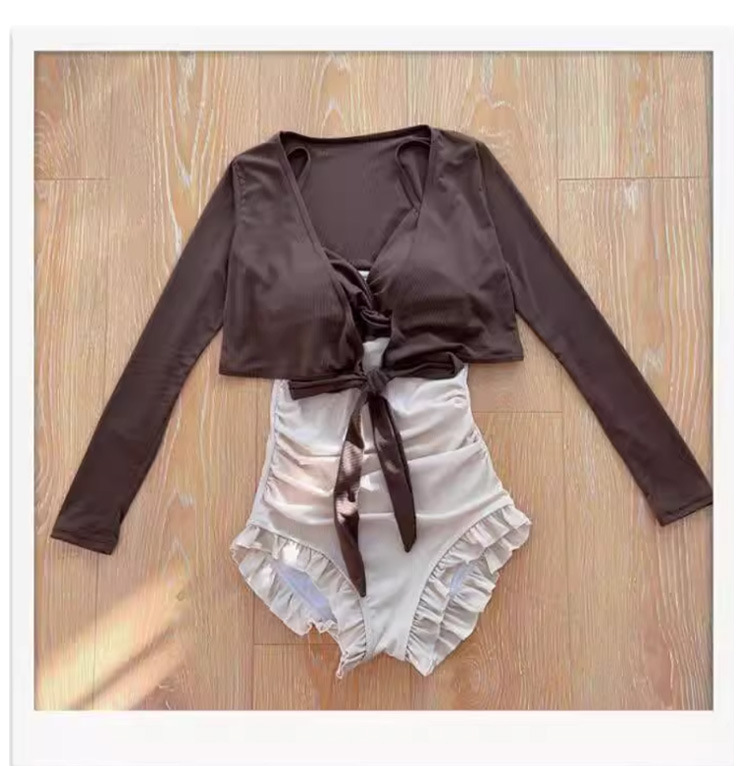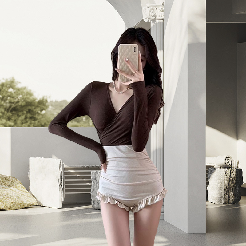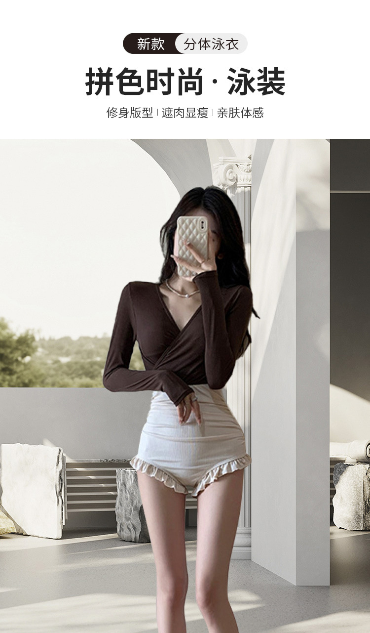 수영복 여성 원피스 투피스 롱슬리브 보수적 슬림 핏 패션 컬러 매칭 기질 레저 온천 수영복스토어 가기