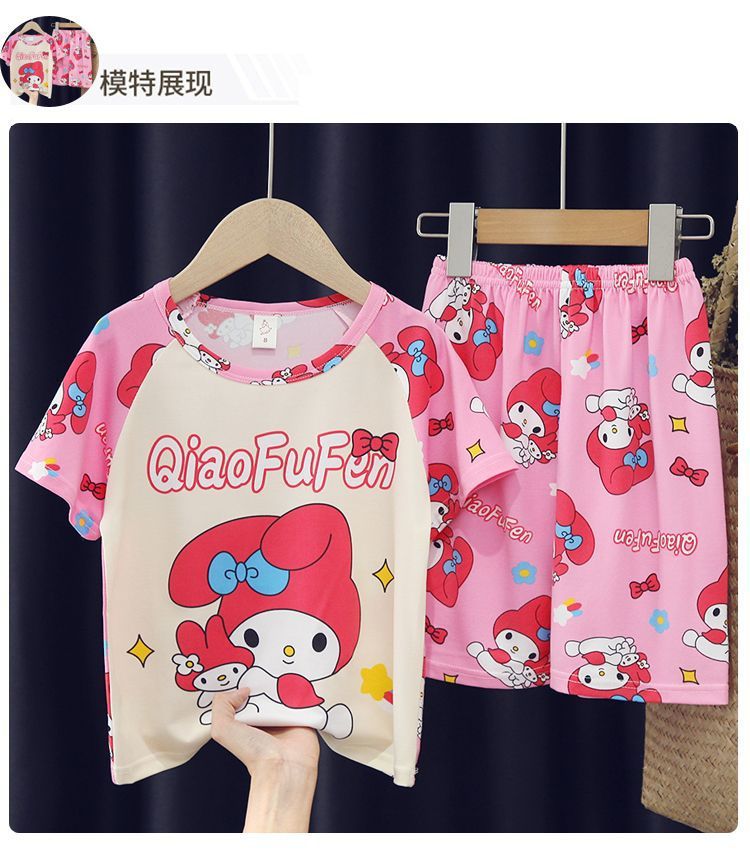 여름 어린이 잠옷 반팔 소년과 소녀 중 큰 어린이 얇은 만화 아기 소년과 학생 홈 의류 세트